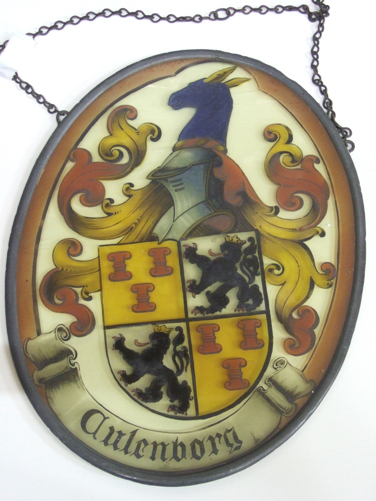 Medaillon van gebrandschilderd glas gevat in loden r...
