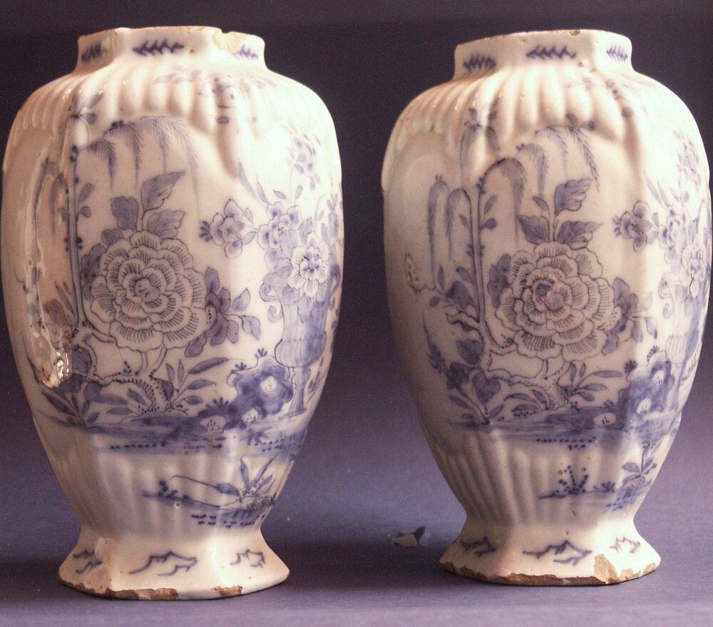 2 fayence dekselvazen, Delft.