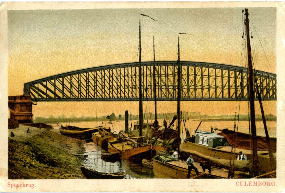 Ansichtkaart, voorstellende de spoorbrug te Culembor...