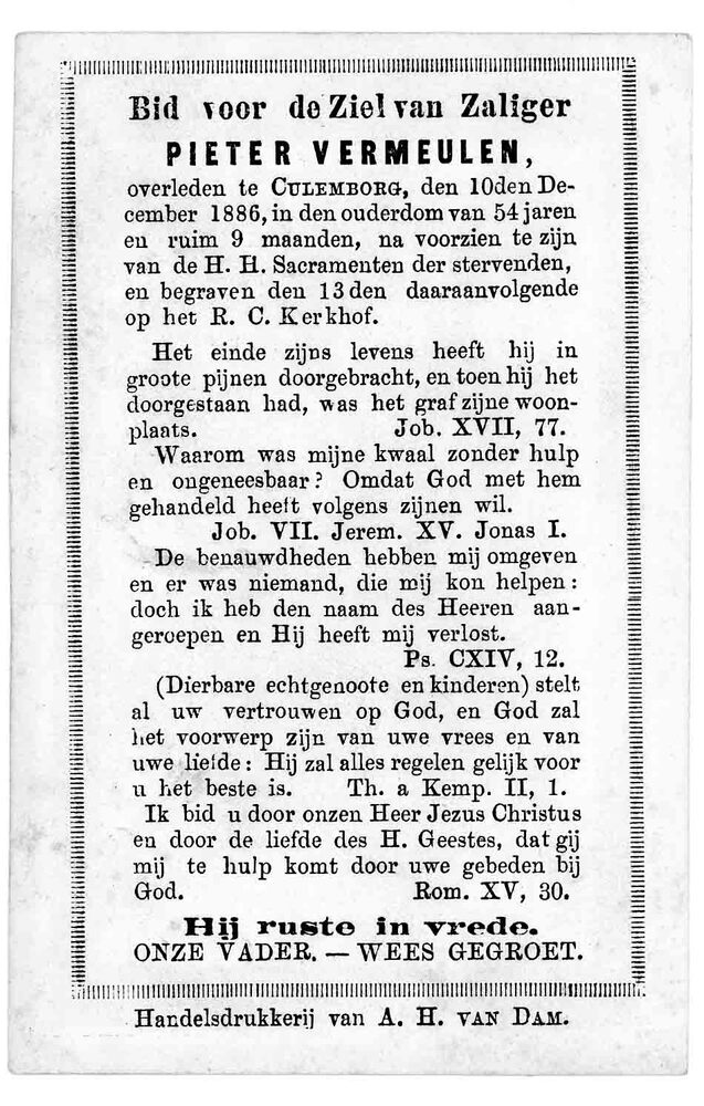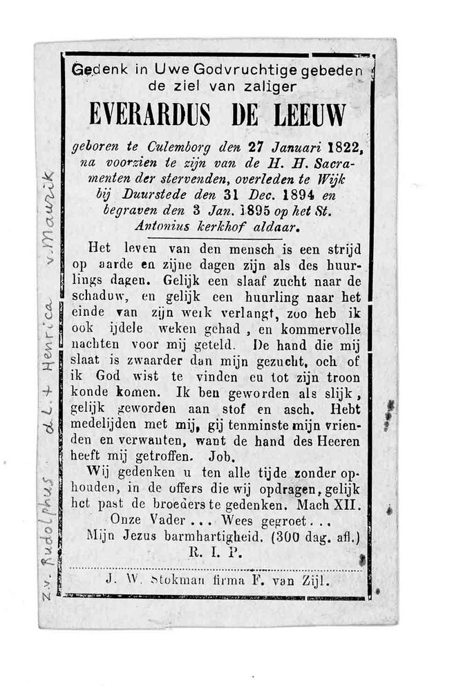 bidprent voor Everardus de Leeuw. Geboren 27-01-1822...