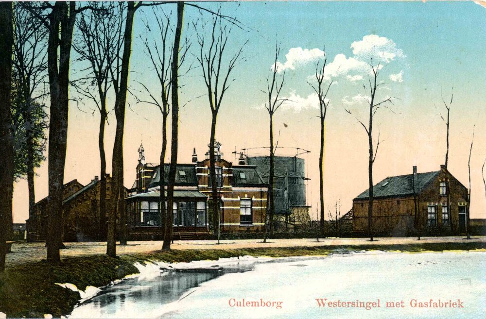 Ansichtkaart, voorstellende de gasfabriek aan de Tri...