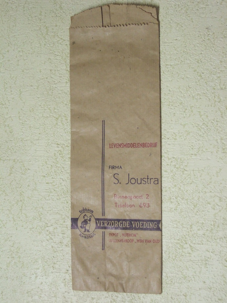 Zakje van papier met reclame opdruk van firma S. Jou...