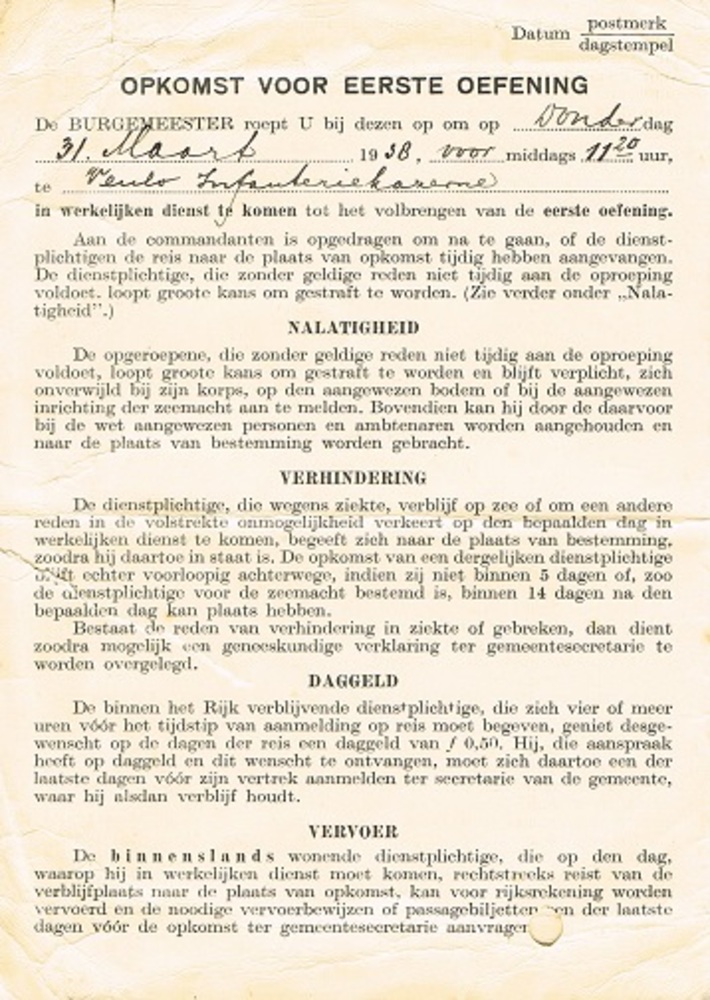 Oproep dienstplicht 1938