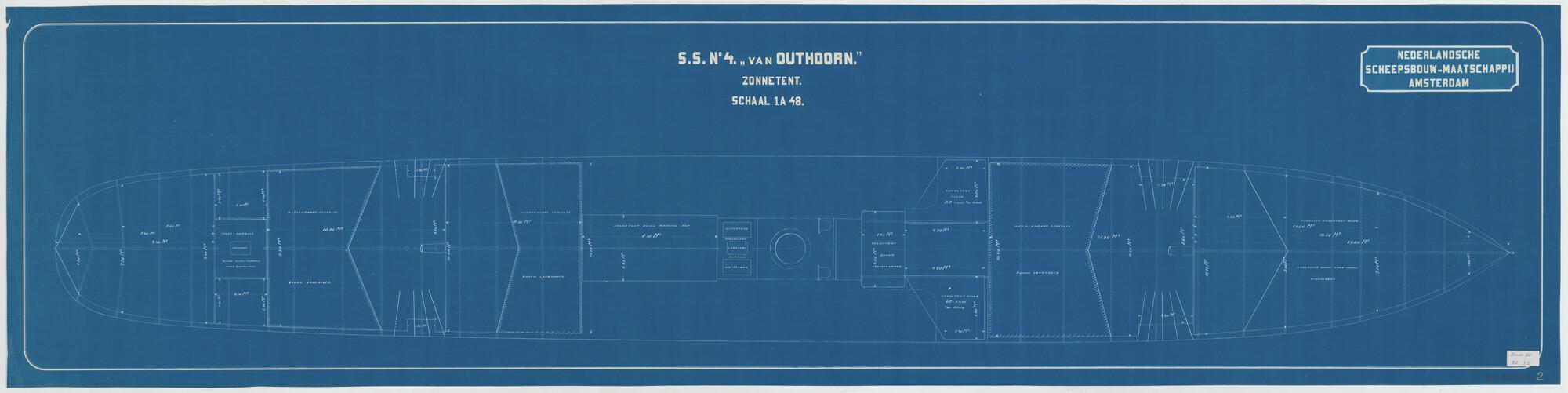 Zonnetent van het vracht- en passagiersschip ss. Van...