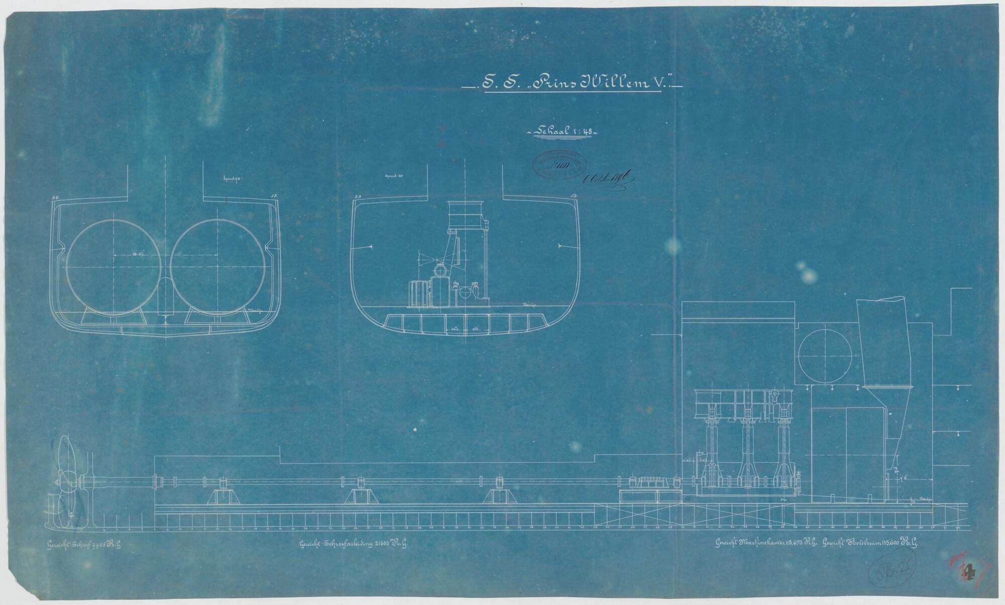 Diepgangsschema van het passagiersschip ss. Prins Wi...