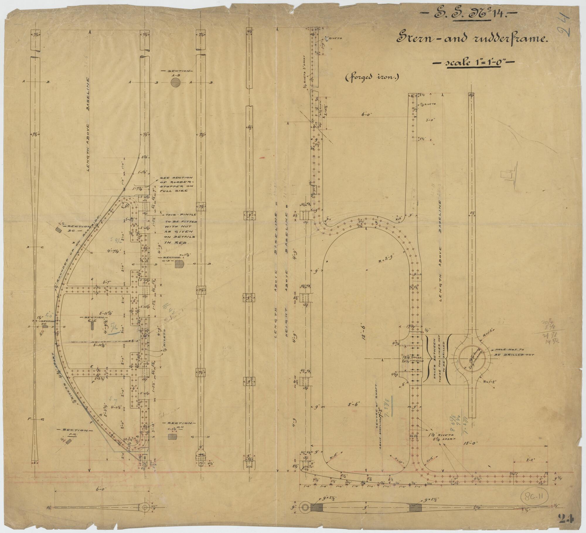 Achterschip met schroefraam en roer van het passagie...