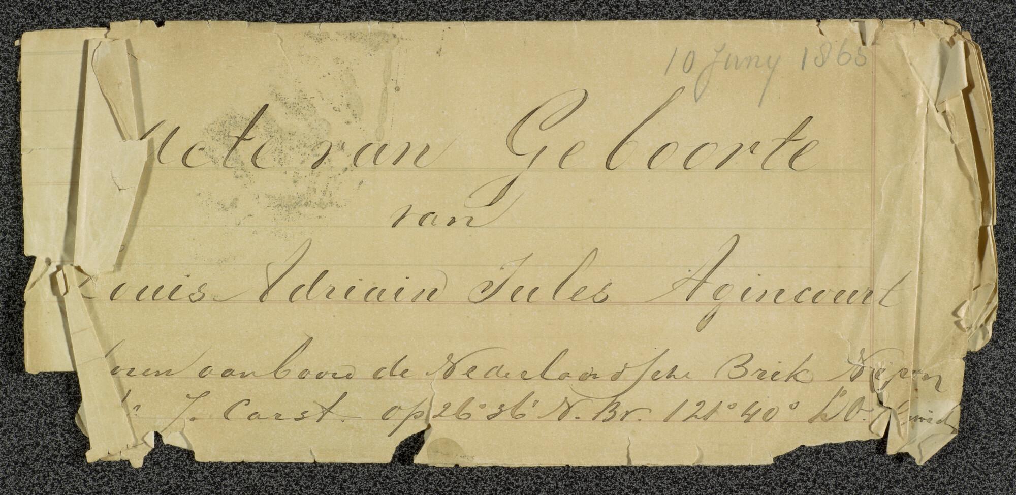Envelop behorende bij de geboorteakte van Louis Adri...