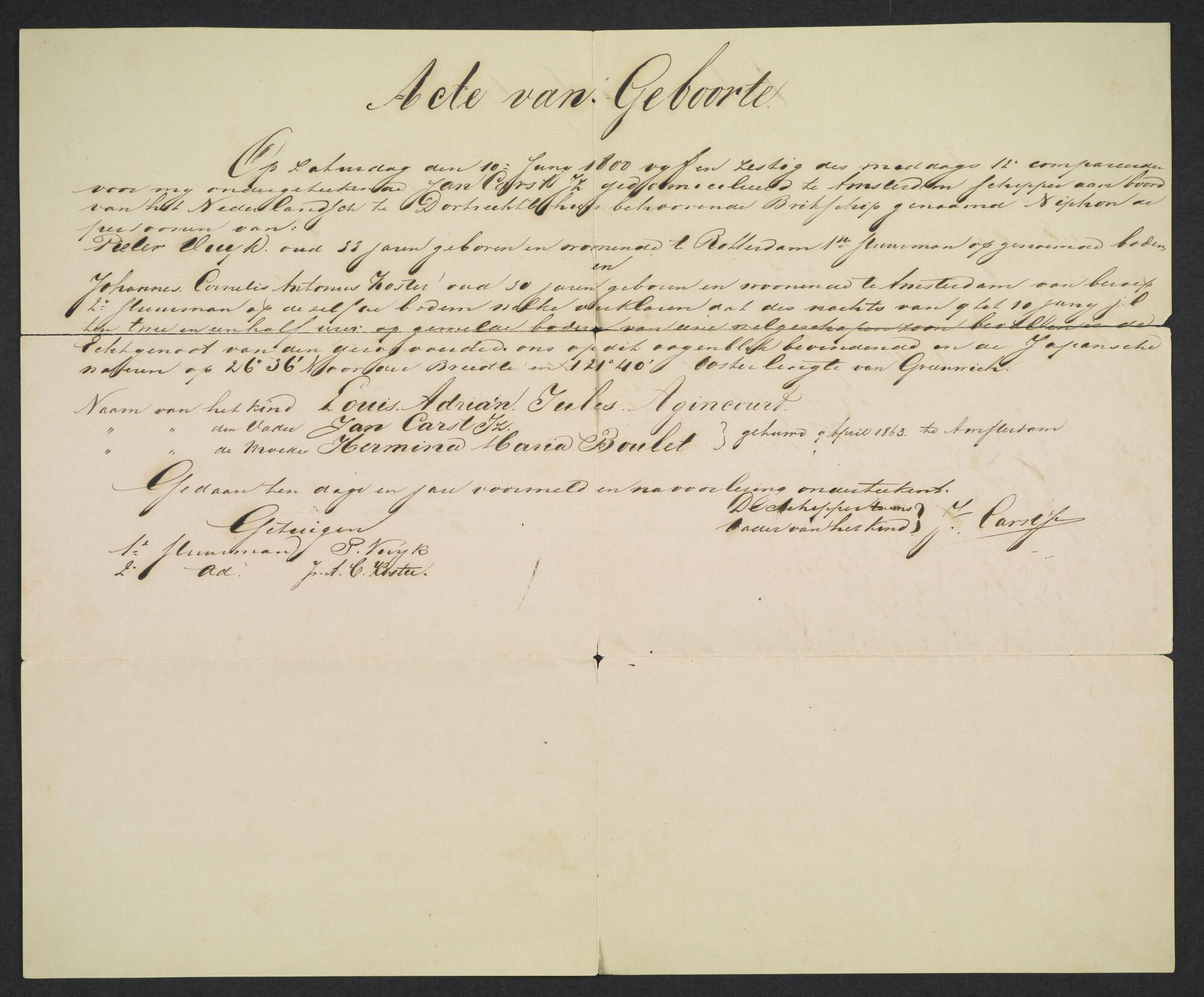 Geboorteakte van Louis Adriain Jules Agincourt Carst