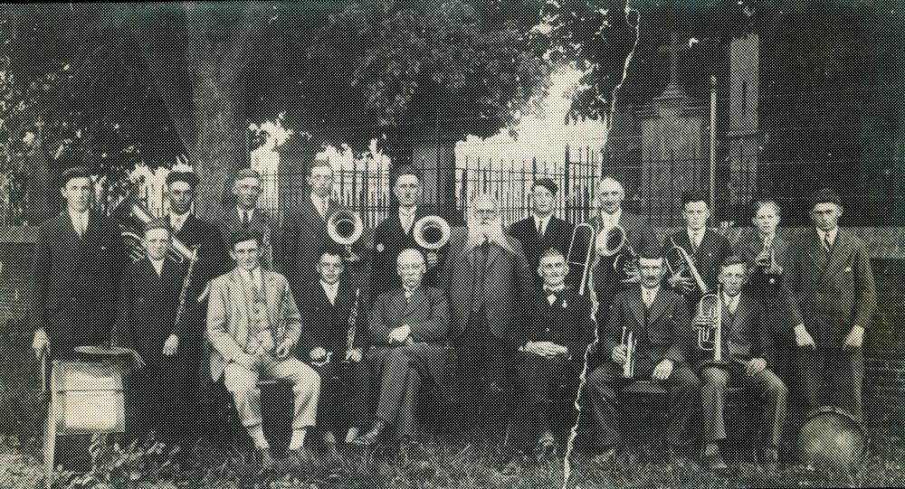 Zwart-wit foto van de muziekvereniging in Herwen ca....