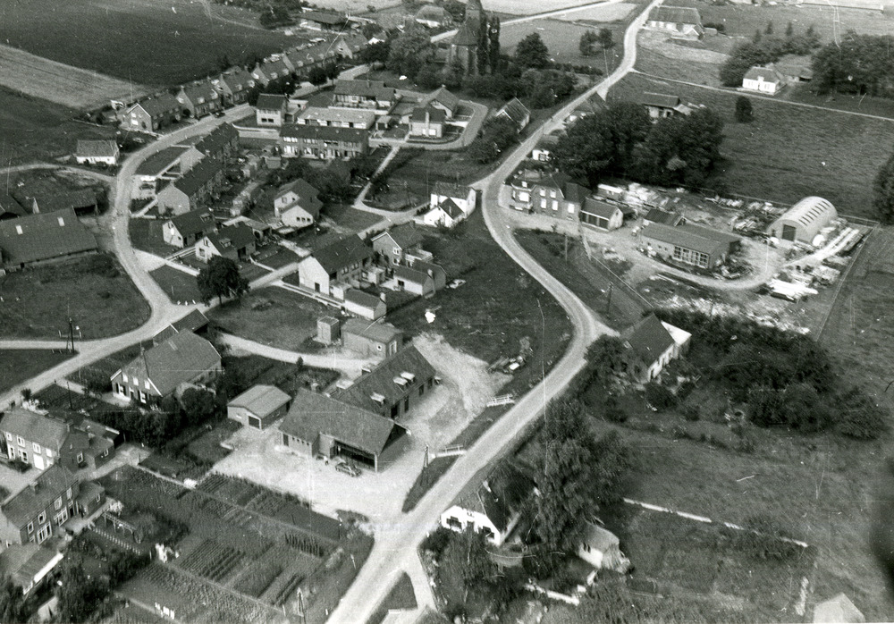 Zwart-wit foto van een luchtopname van Aerdt ca. 195...