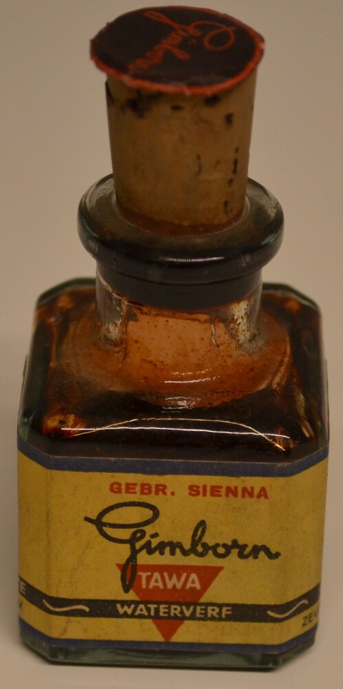 Flesje van glas en vierkant met etiket van papier en...