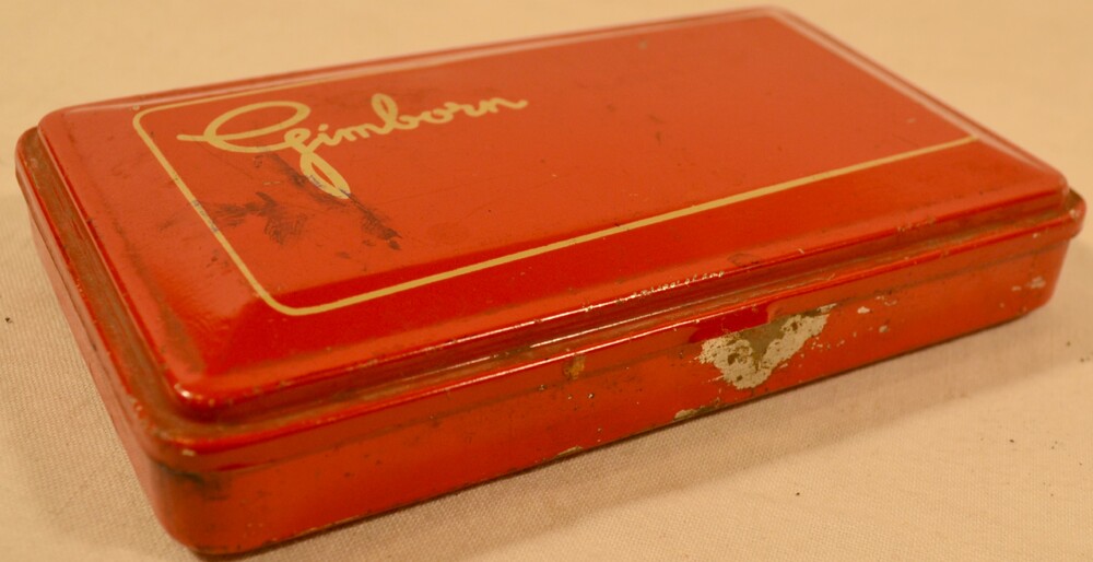 Stempelkussen van stof in een blikje van metaal rood...