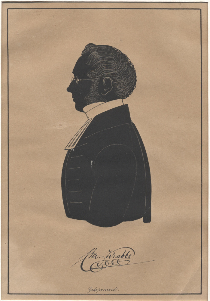 Silhouet van borststuk van Chr. Krabbe. Zwarte inkt ...