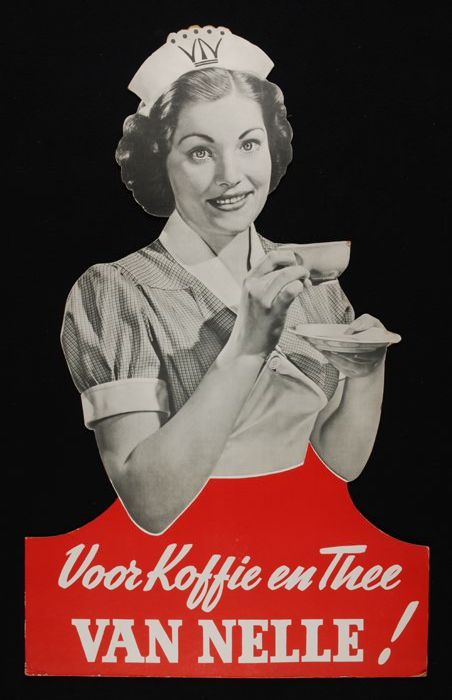 Reclamebord van Nelle's koffie en thee met "Nellie"