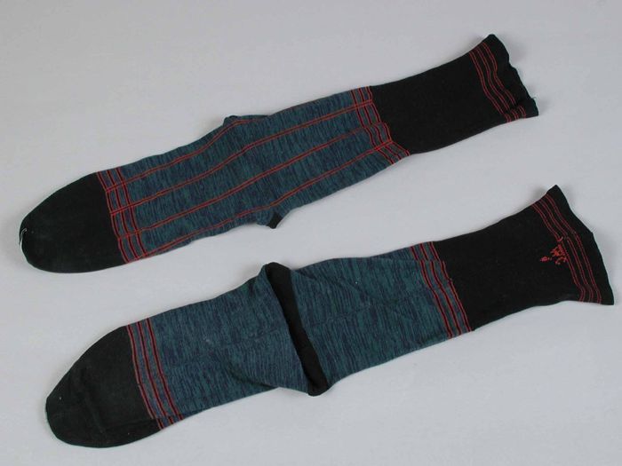 Paar sokken van fijn zwart tricot katoen met ingbrei...