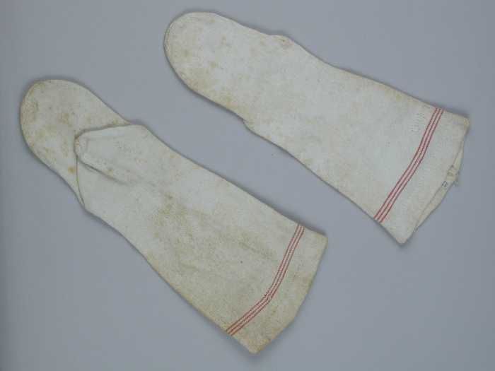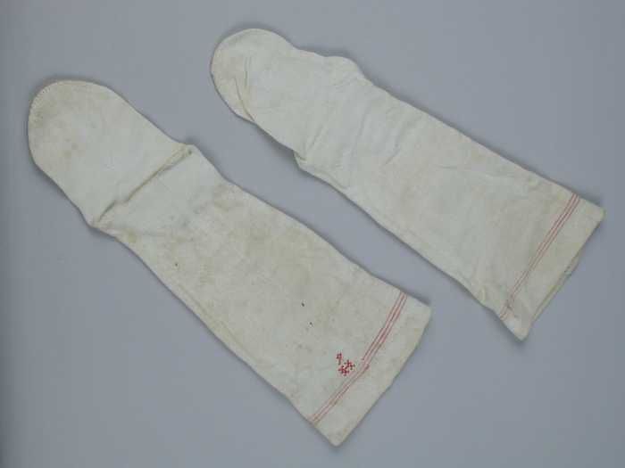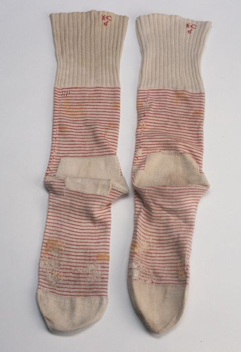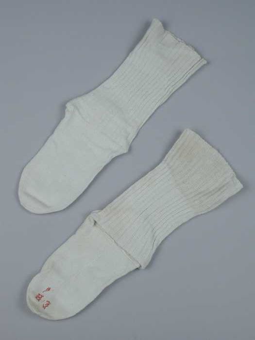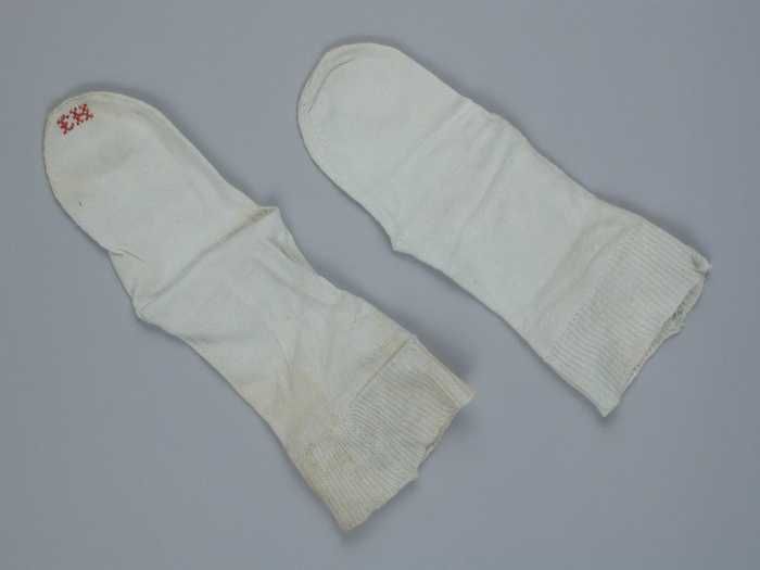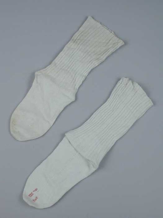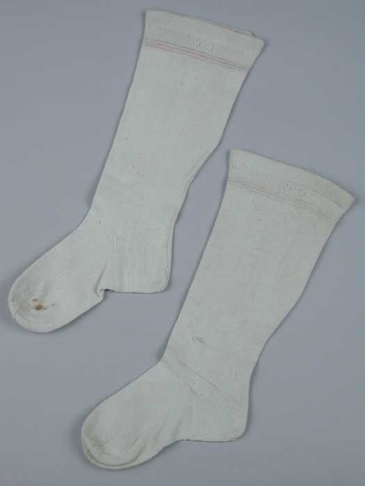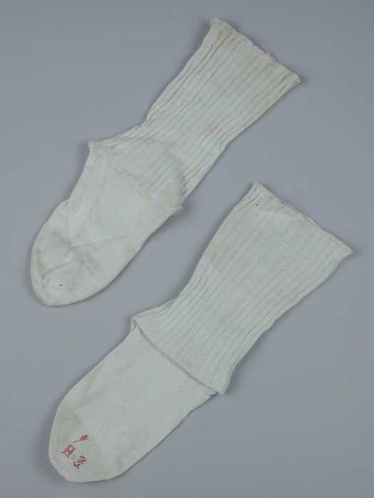 Kindersokken gebreid van fijn wit katoen, gemerkt on...