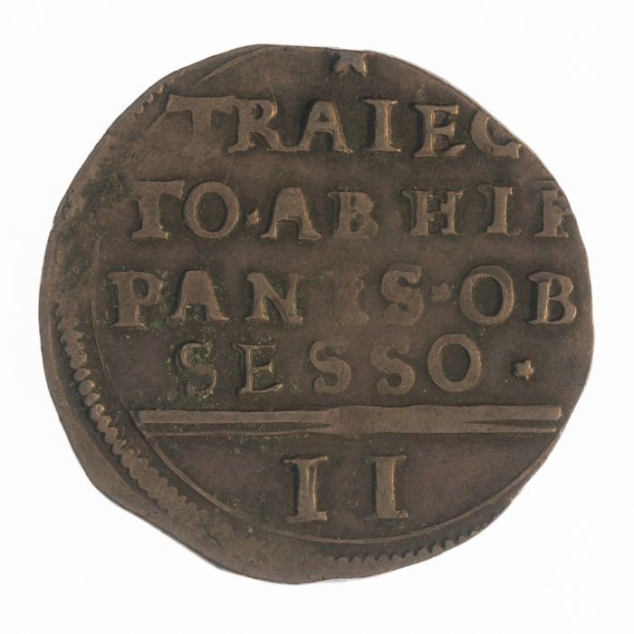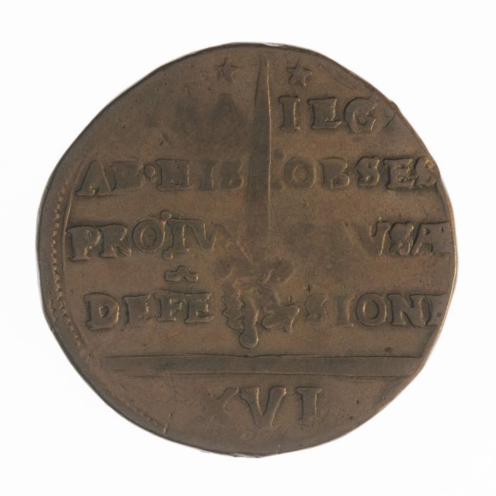 Koperen noodmunt, zestien stuiver, Maastricht, 1579