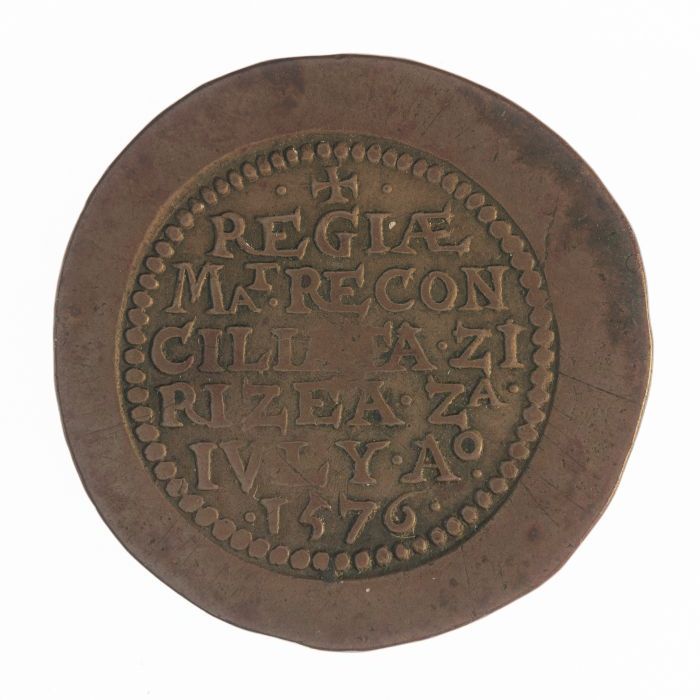 Valse koperen noodmunt, daalder, Zierikzee, 1576