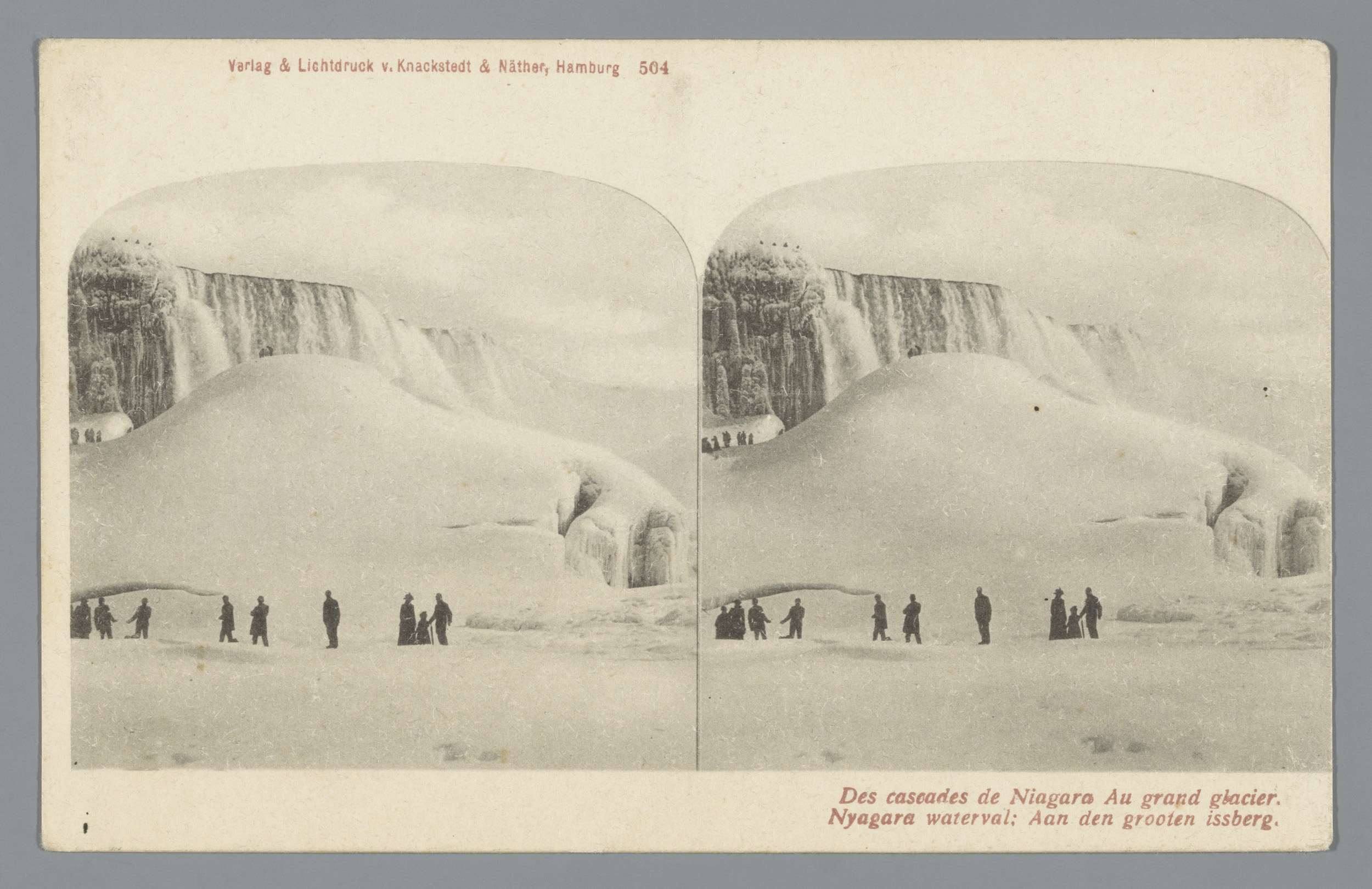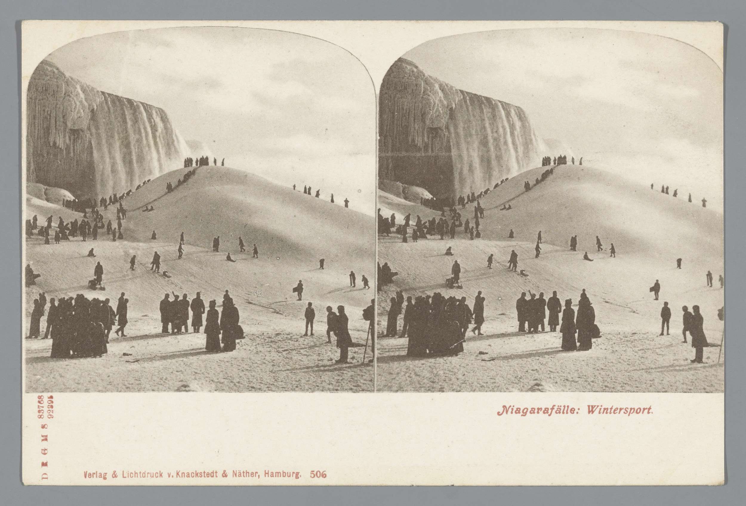 Mensen vermaken zich bij de Niagarawatervallen in de...
