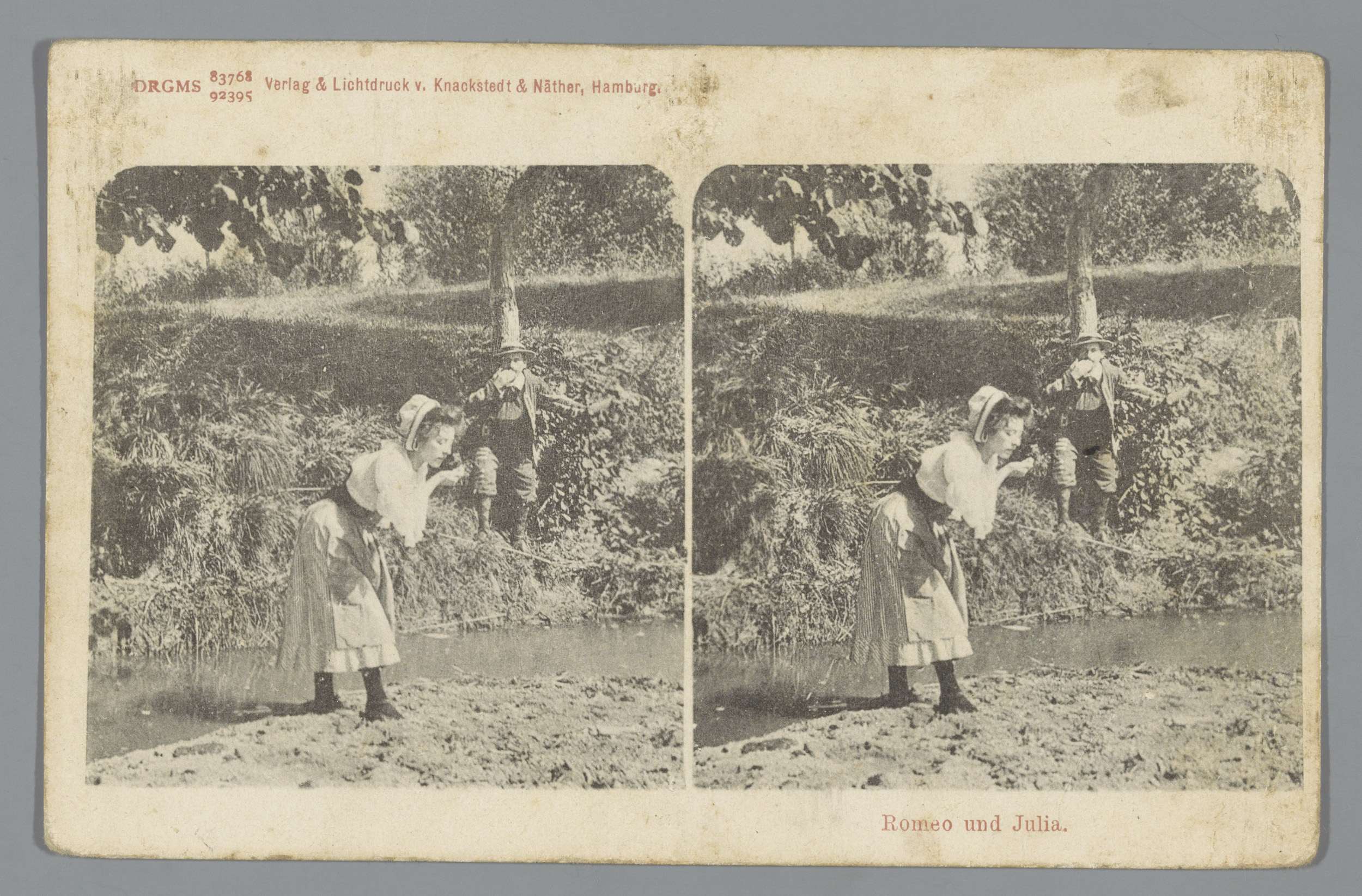 Man en vrouw aan weerszijden van een beek, 'Romeo en...