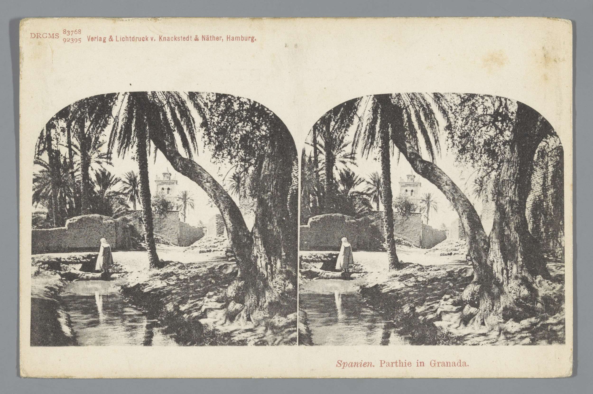 Palmen en water nabij de Bab el Darb-moskee, Biskra