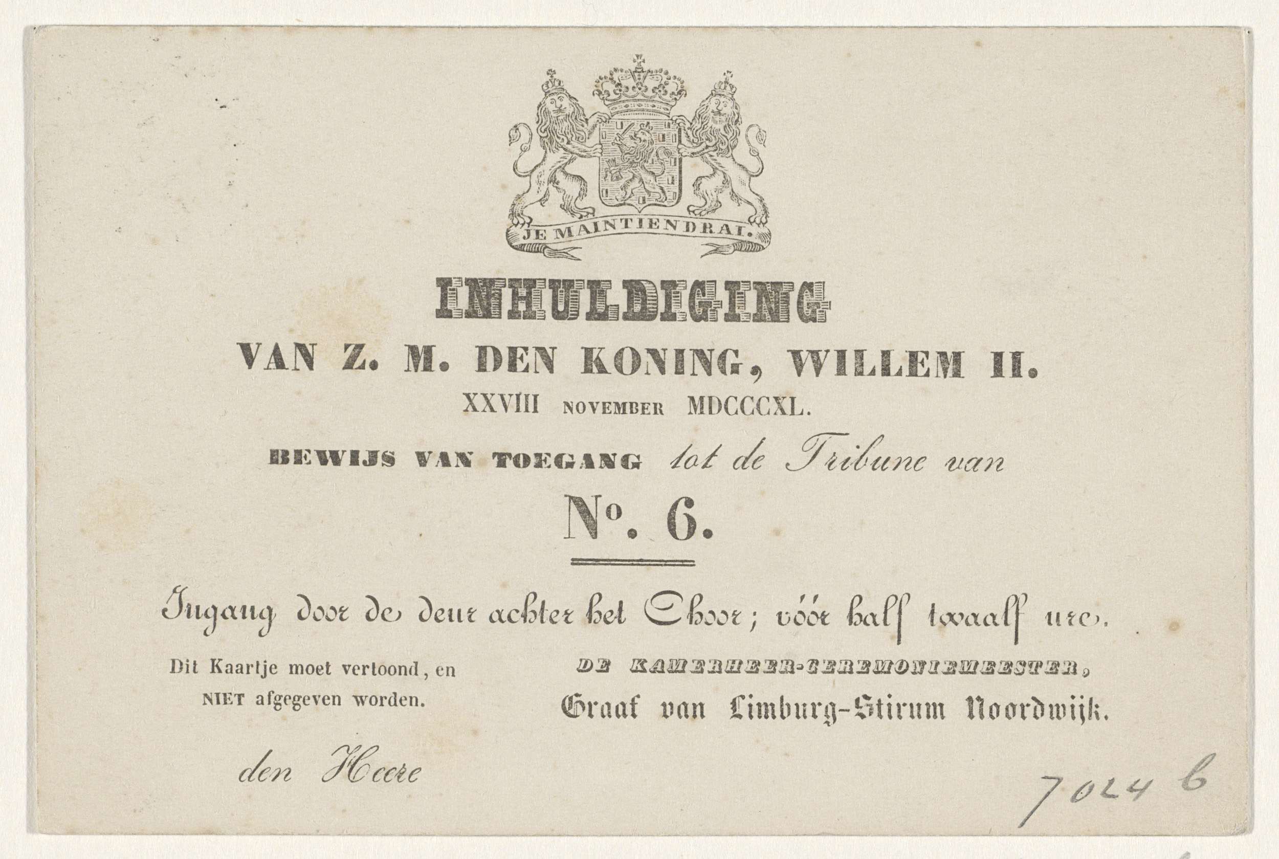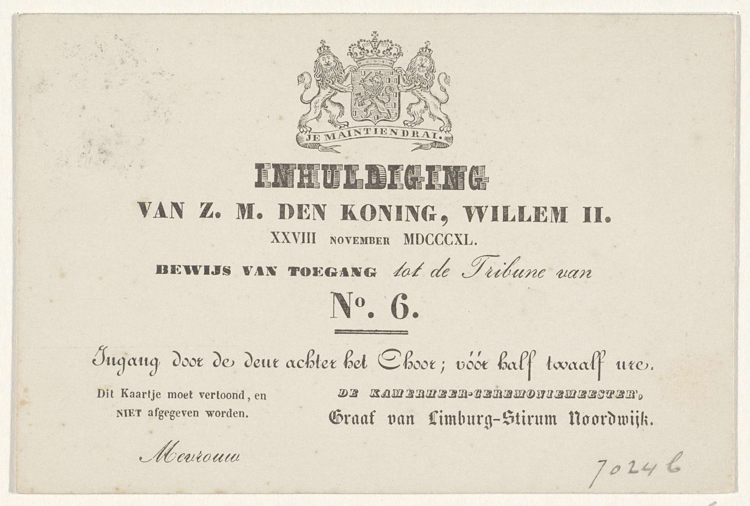 Inhuldiging van Z.M. den Koning, Willem II. XXVIII N...