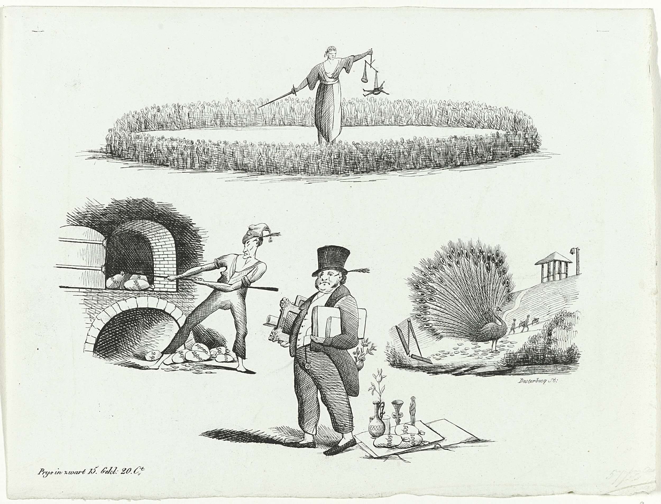 Spotprent op J.C. Backer, C. Seyn en S. van der Paau...