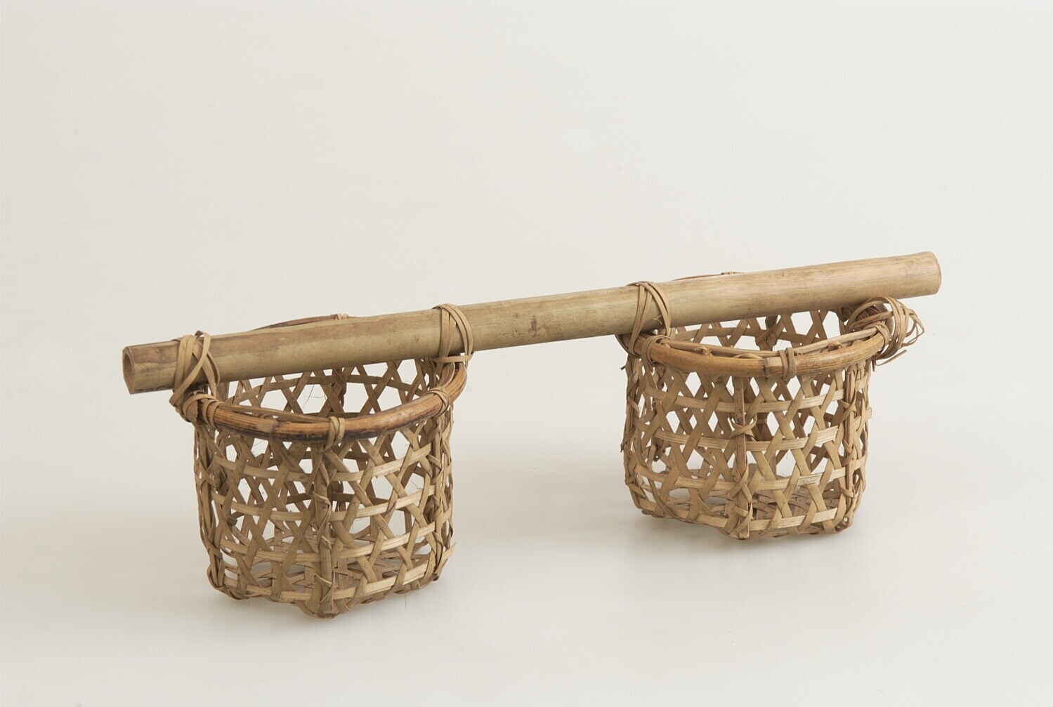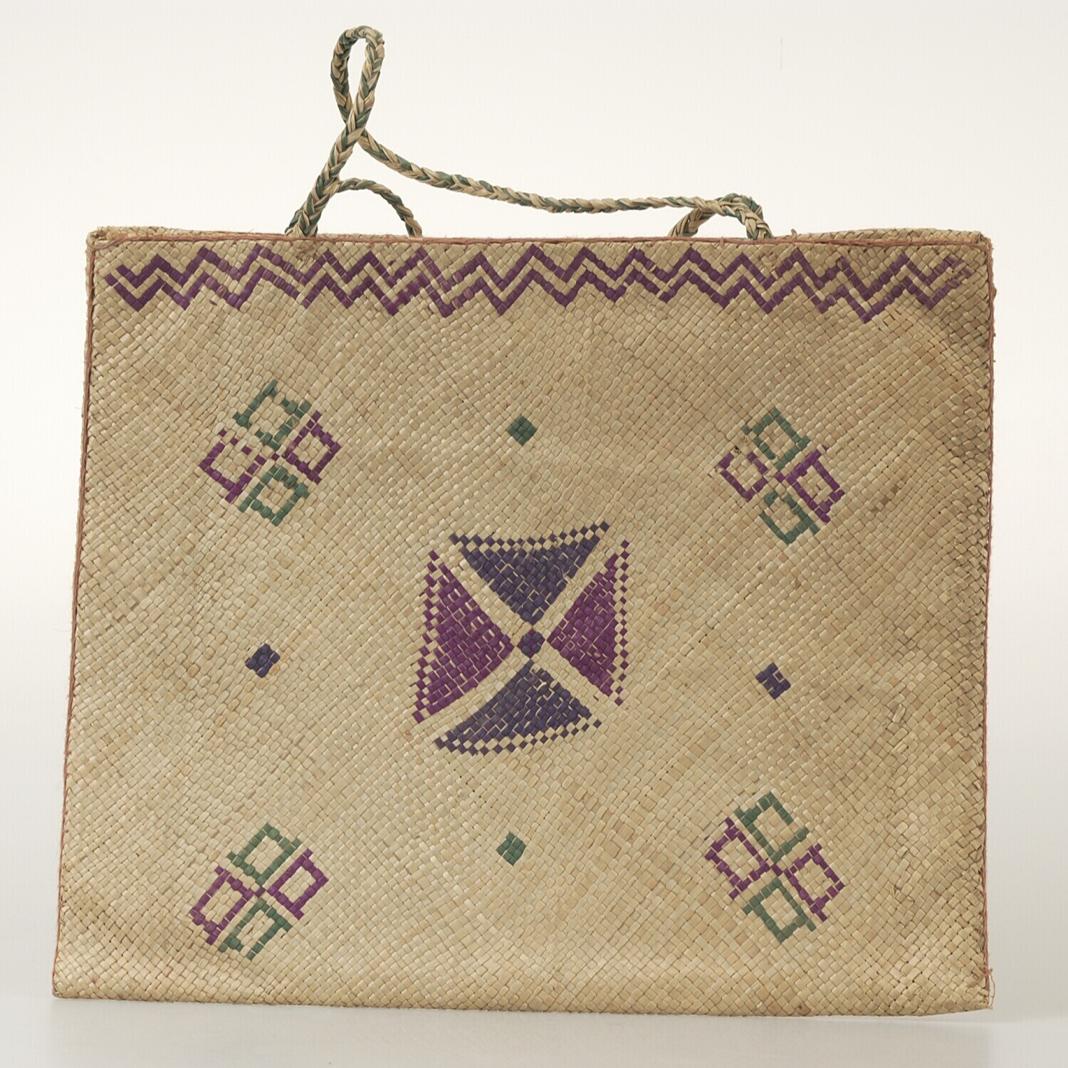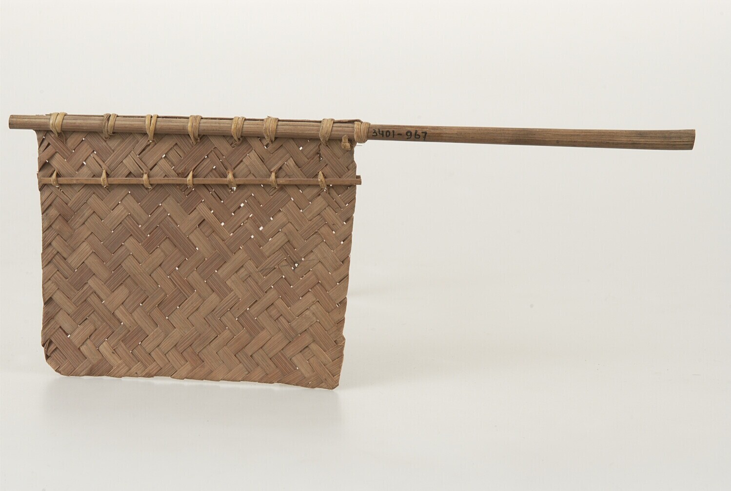 Gevlochten mand van bamboe en vermoedelijk rotan en ...