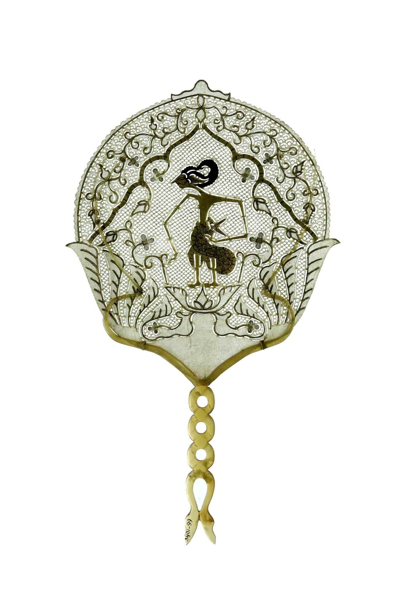 Waaier van karbouwenhuid met handvat van karbouwenhoorn