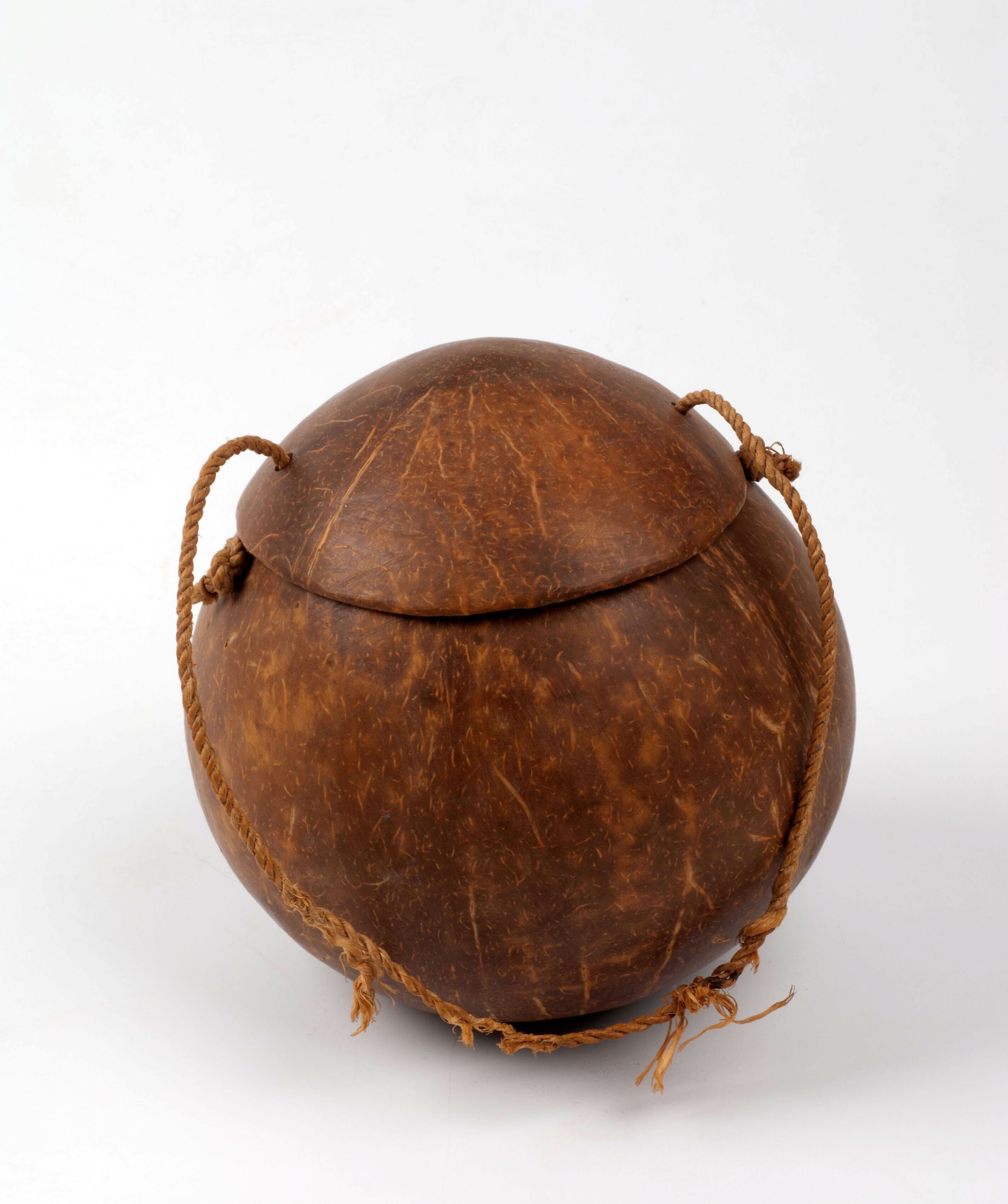 Bolvormig bakje met los deksel van kokosnootschaal a...