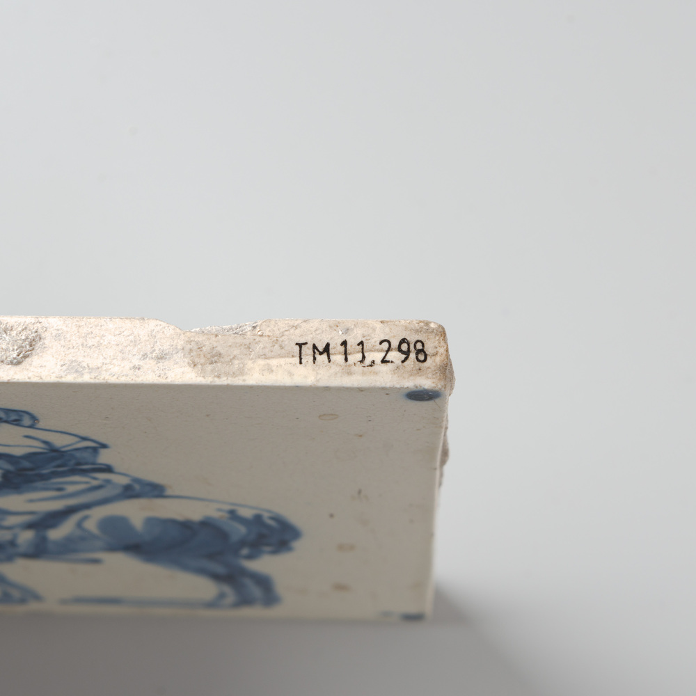 tegel van aardewerk met tinglazuur, voorstellende: h...