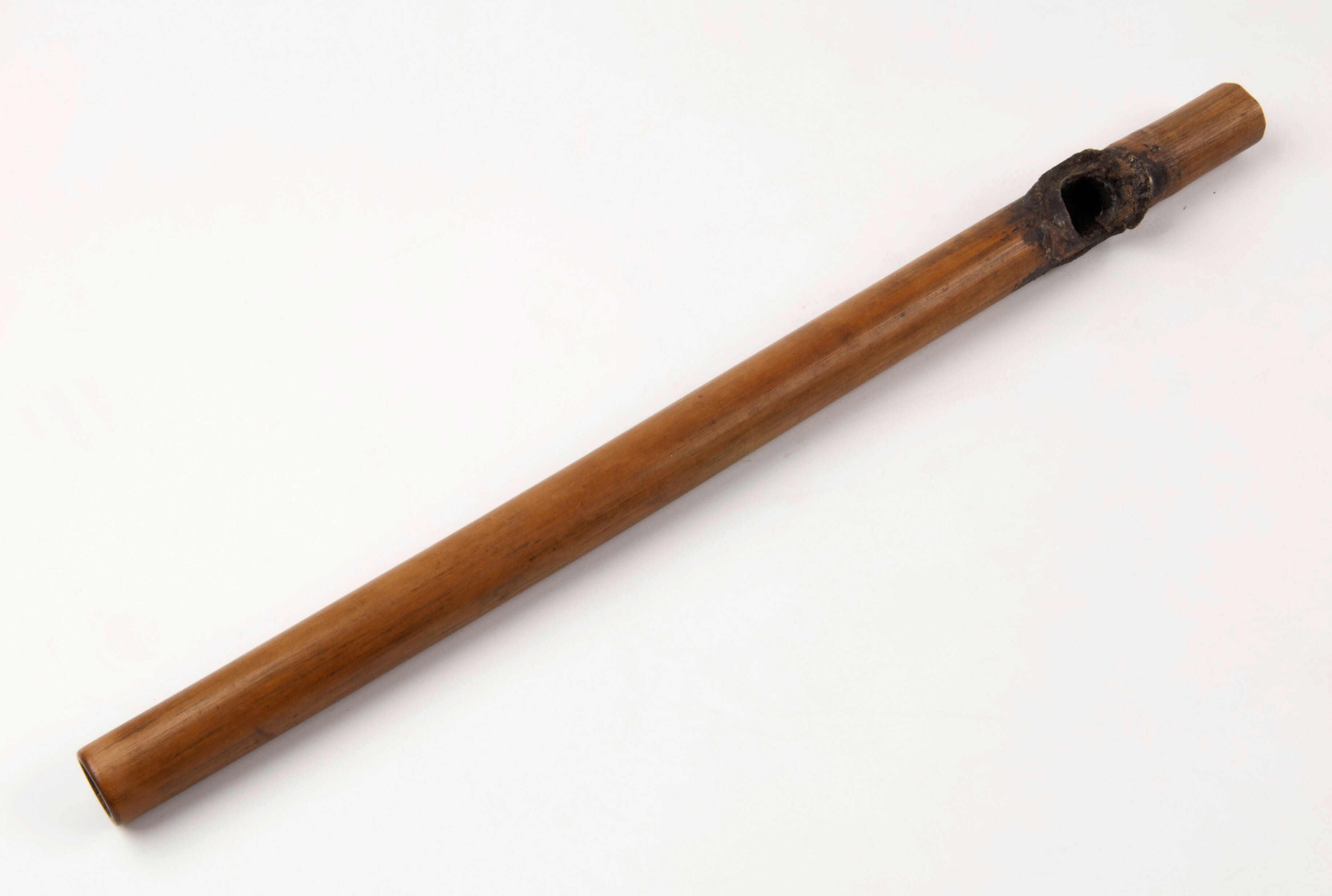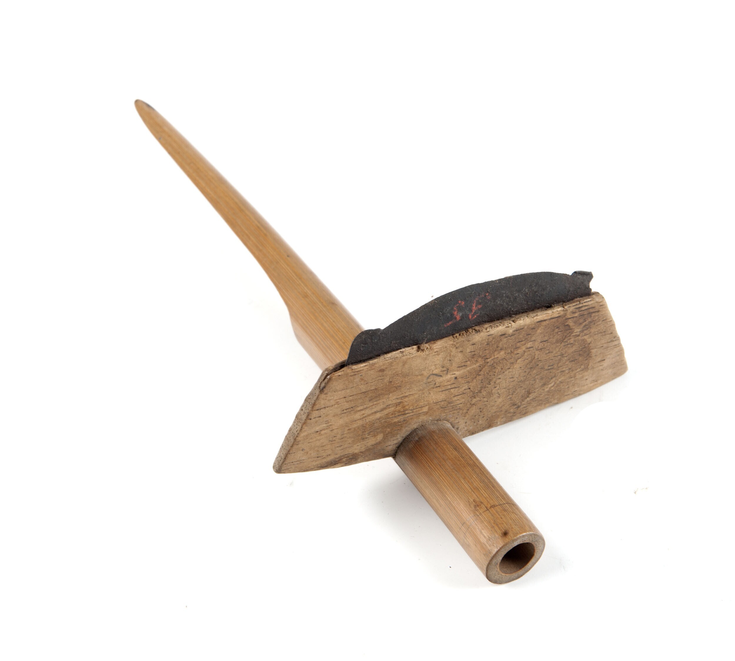 Opiumpijp met aardewerken pijpenkop in de vorm van e...