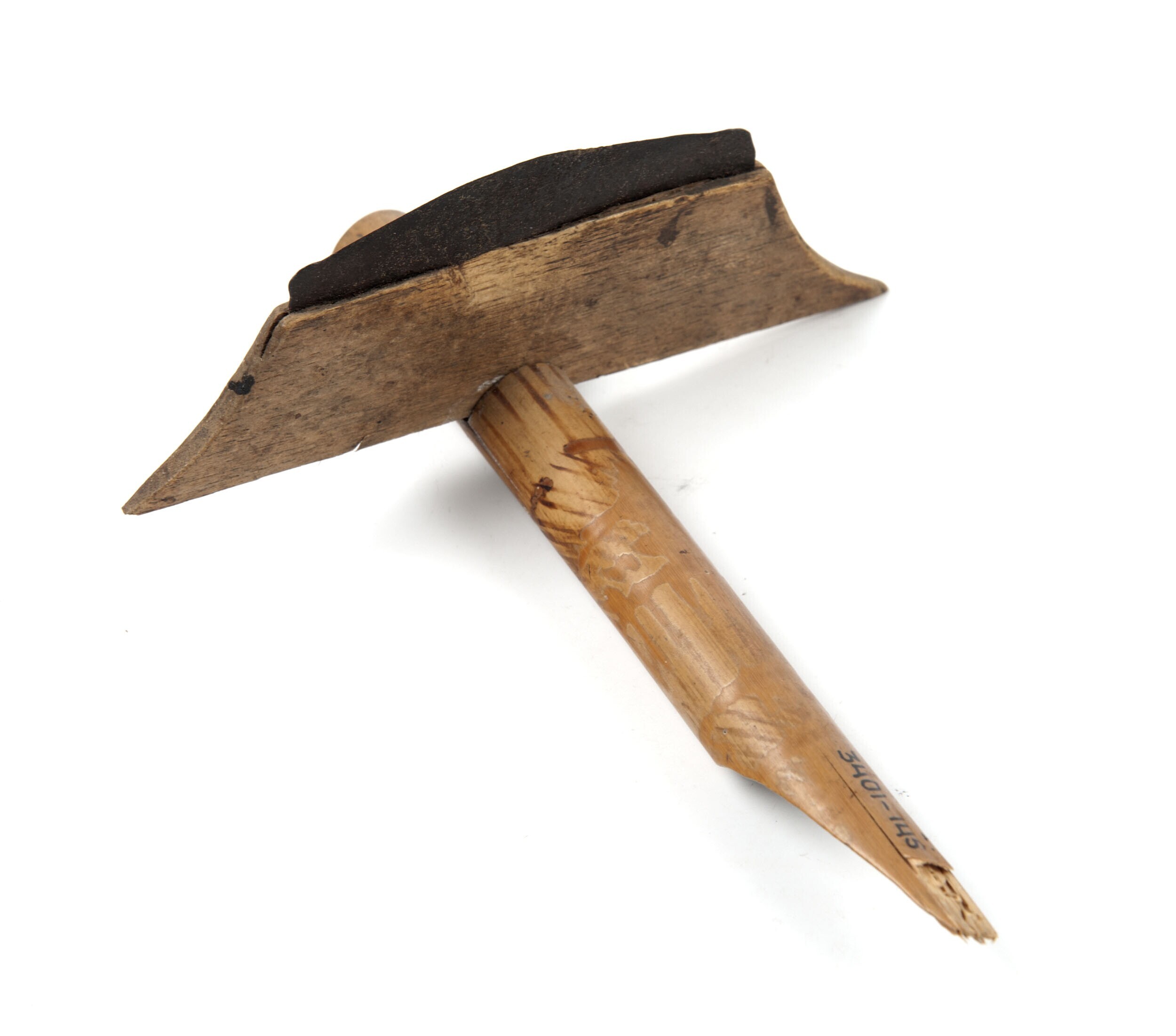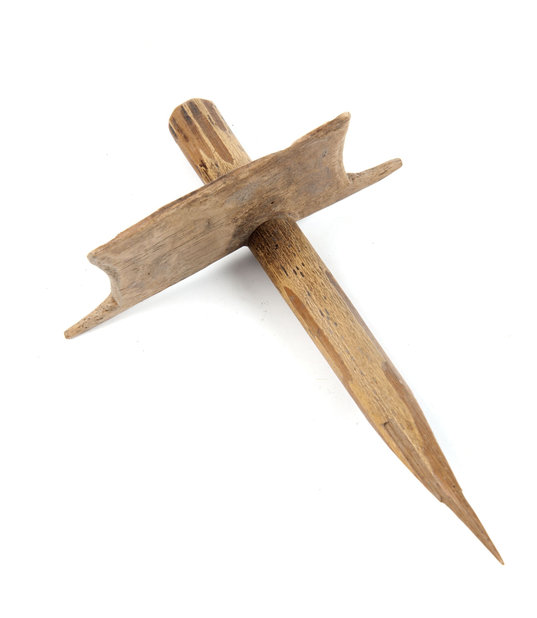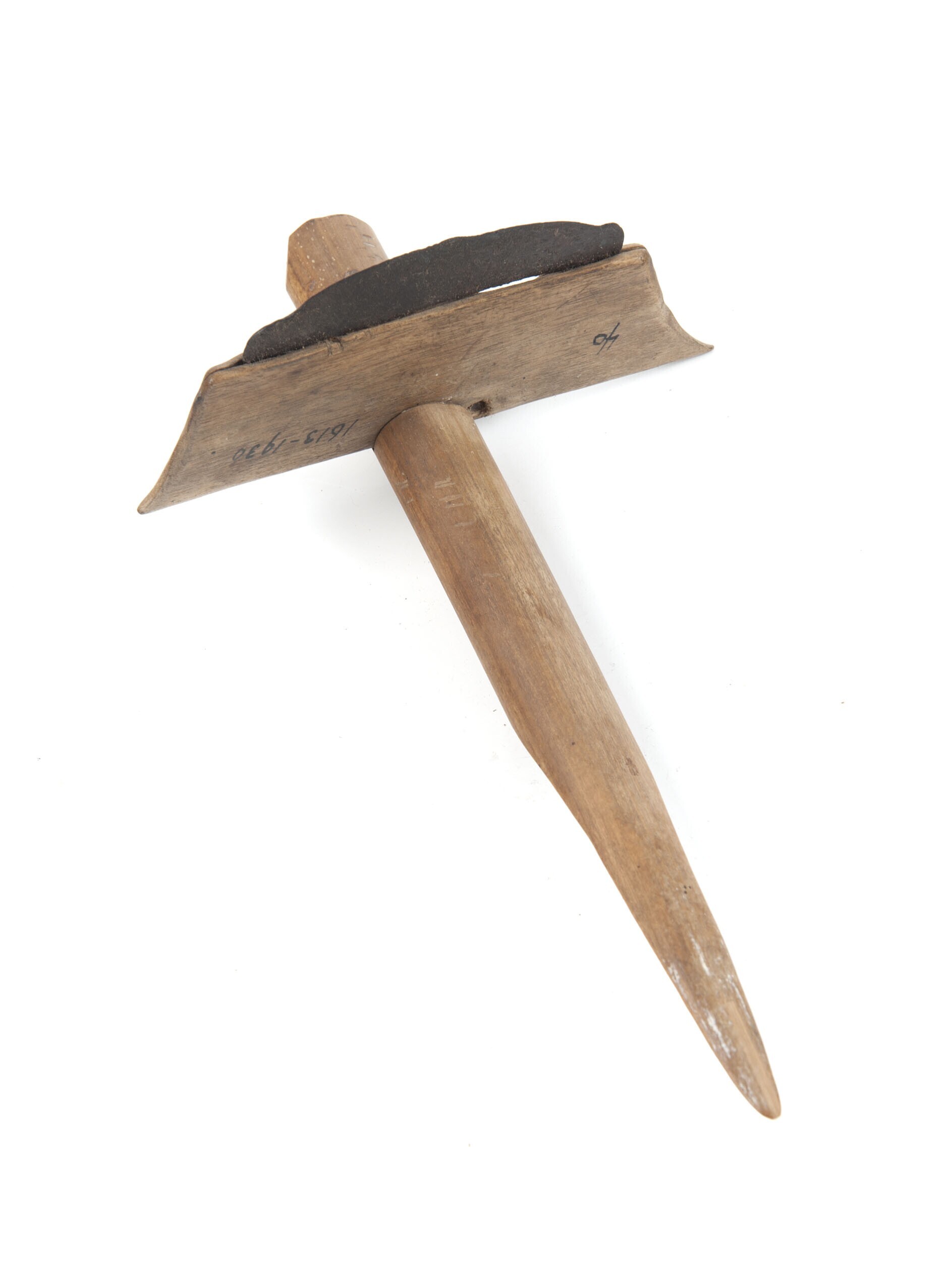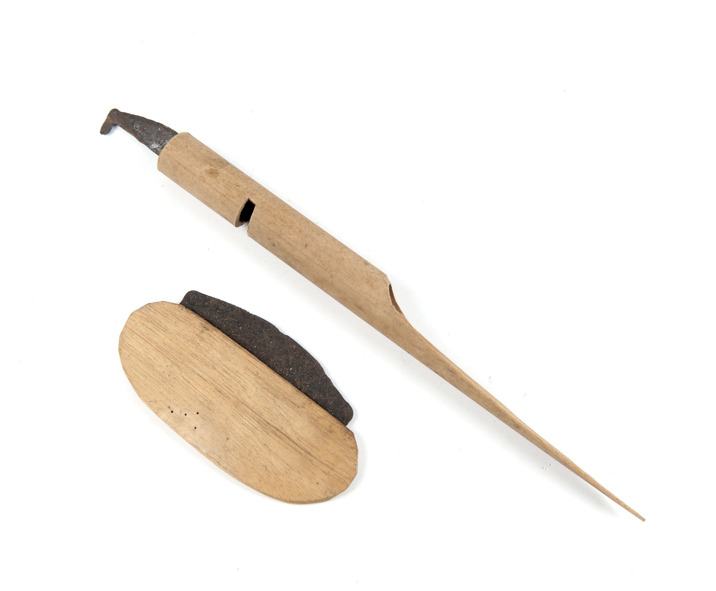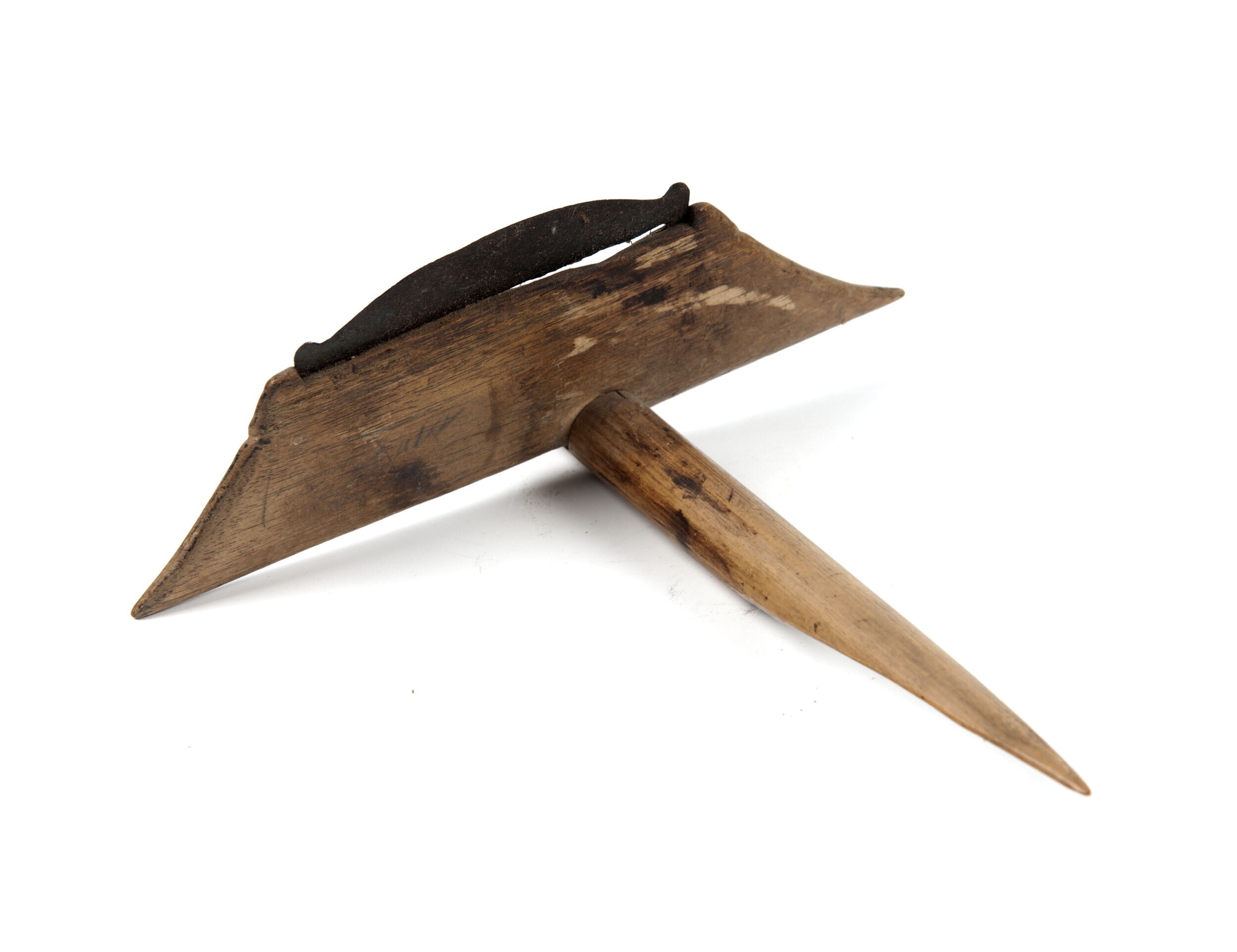 Houten harpoen, met een stenen handvat en een ijzere...