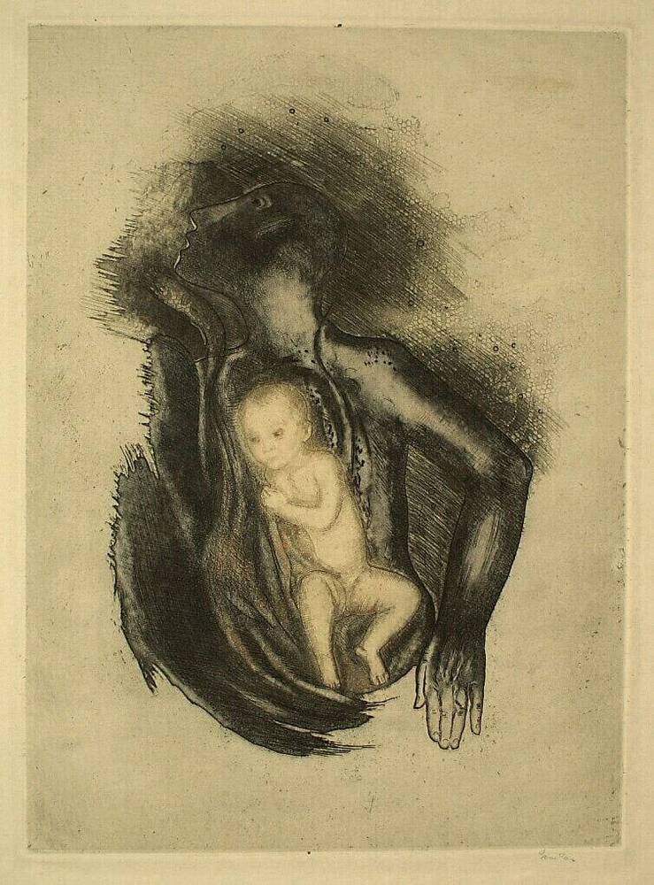 Portretfoto van Line Voûte met haar oudste zoon Will...