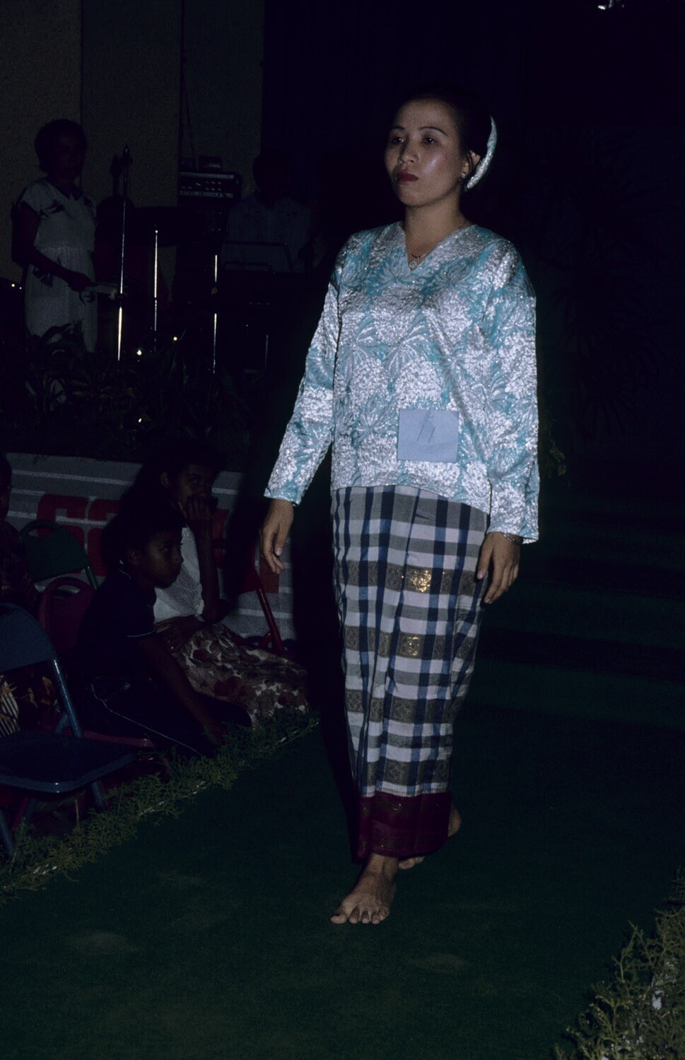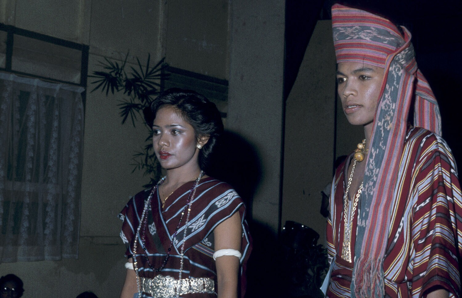 Een kledingdemonstratie van Molukse adatkleding, paa...