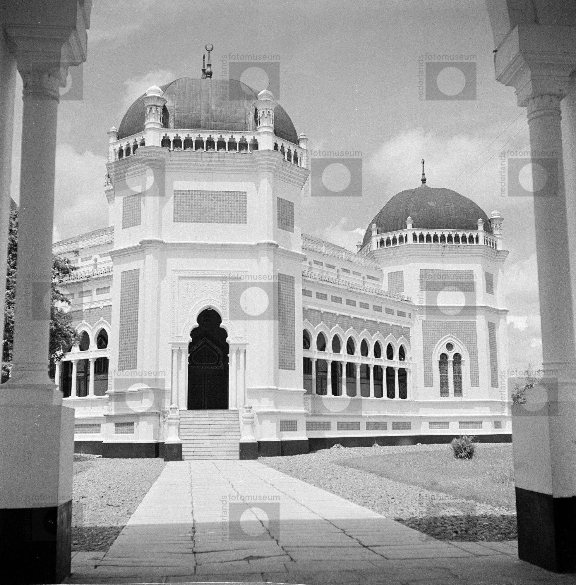 Overhoeks aanzicht van de Masjid Raya, oftewel Grote...