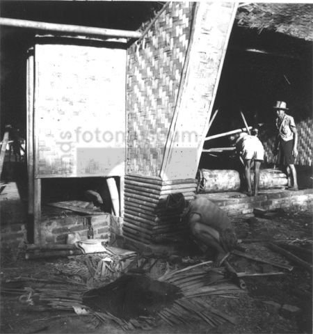 Bouwvakkers werken aan een traditioneel Javaans gebo...