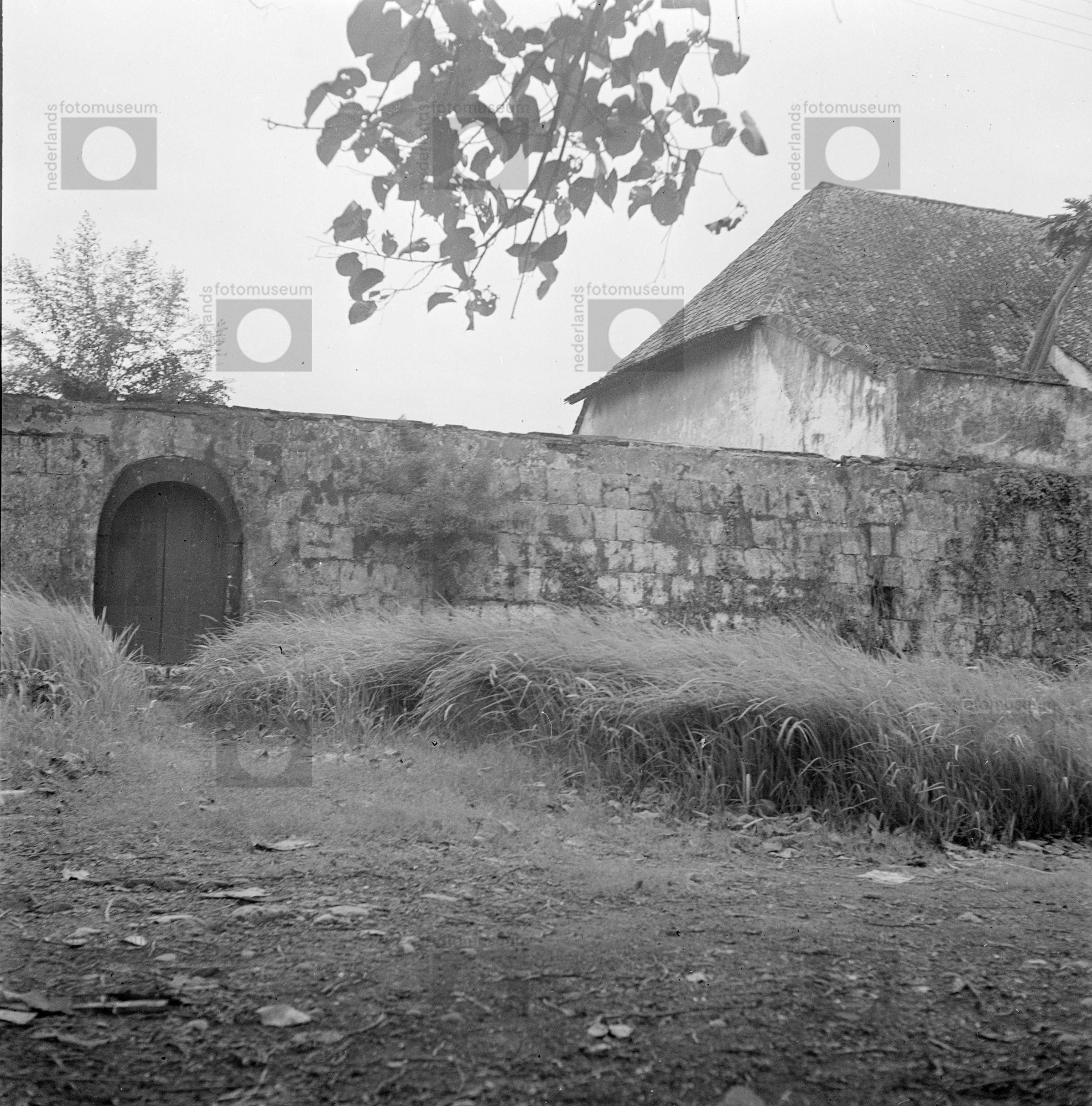 Voormalige V.O.C.-loods achter een stenen muur, Indo...