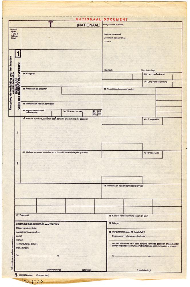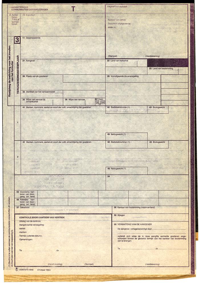 T aangifte communautair douanevervoer, 1982