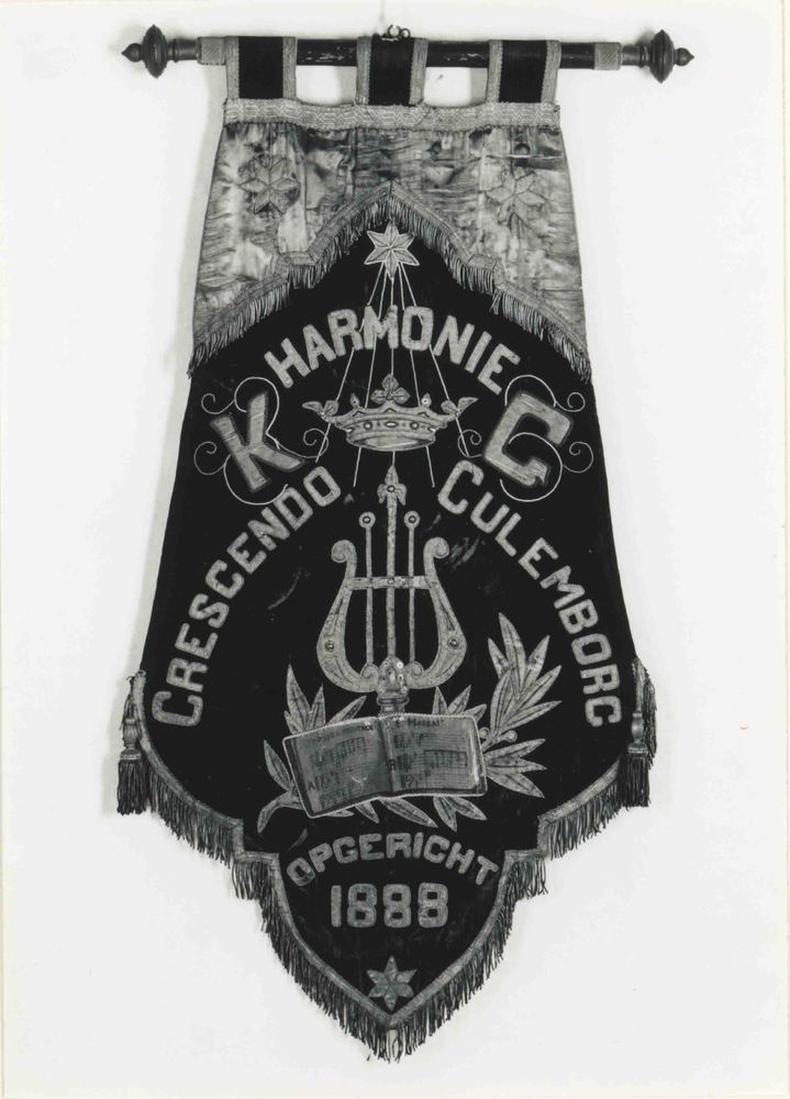 Foto, voorstellende vaandel Harmonie Crescendo te Cu...
