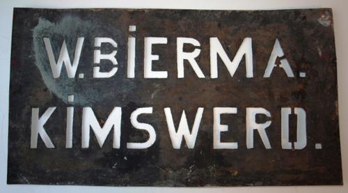 Sjabloon van metaal gebruikt om een naam of merkteke...