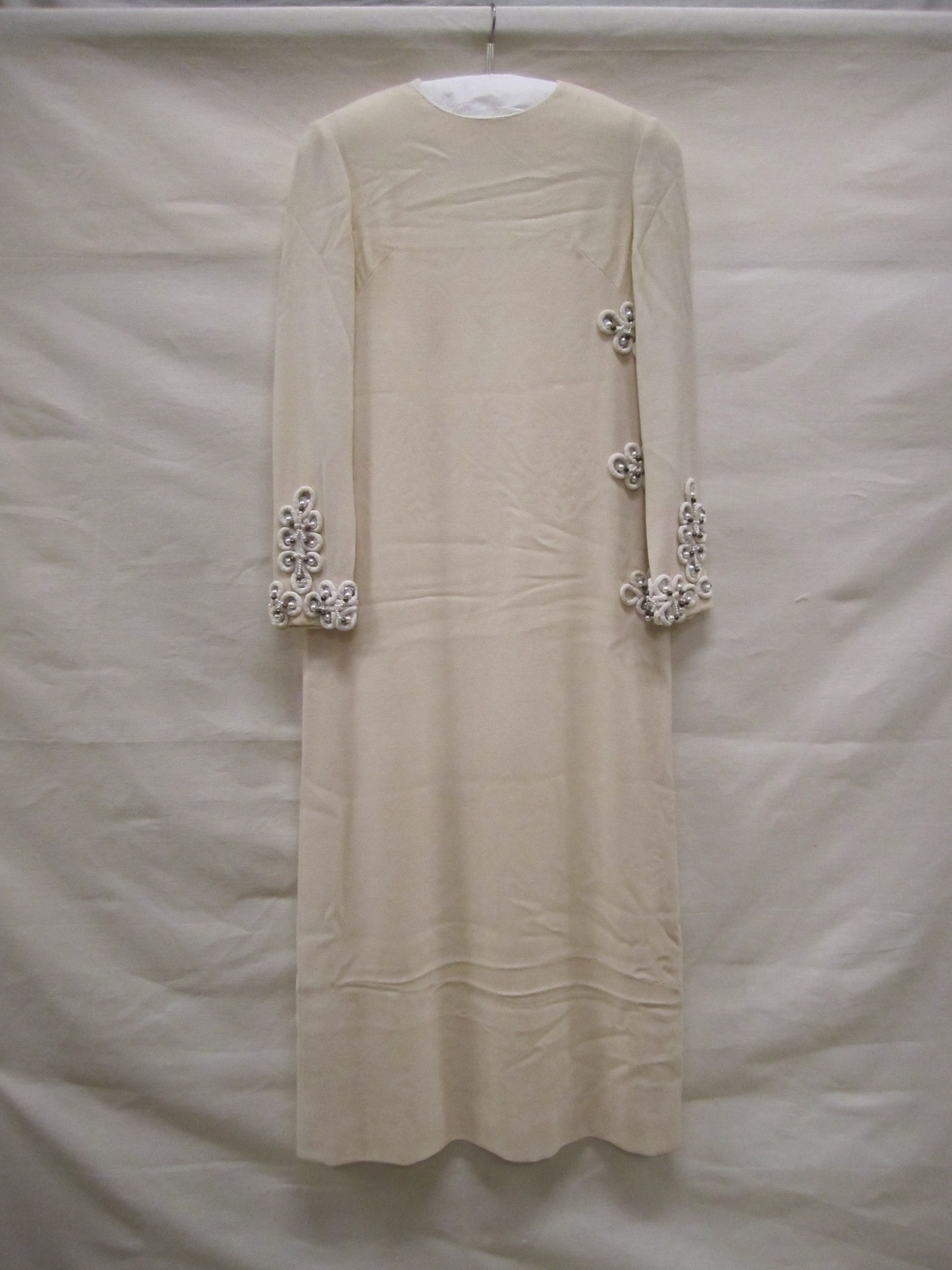 Avondjurk van crèmekleurig wollen crêpe, rond pols e...