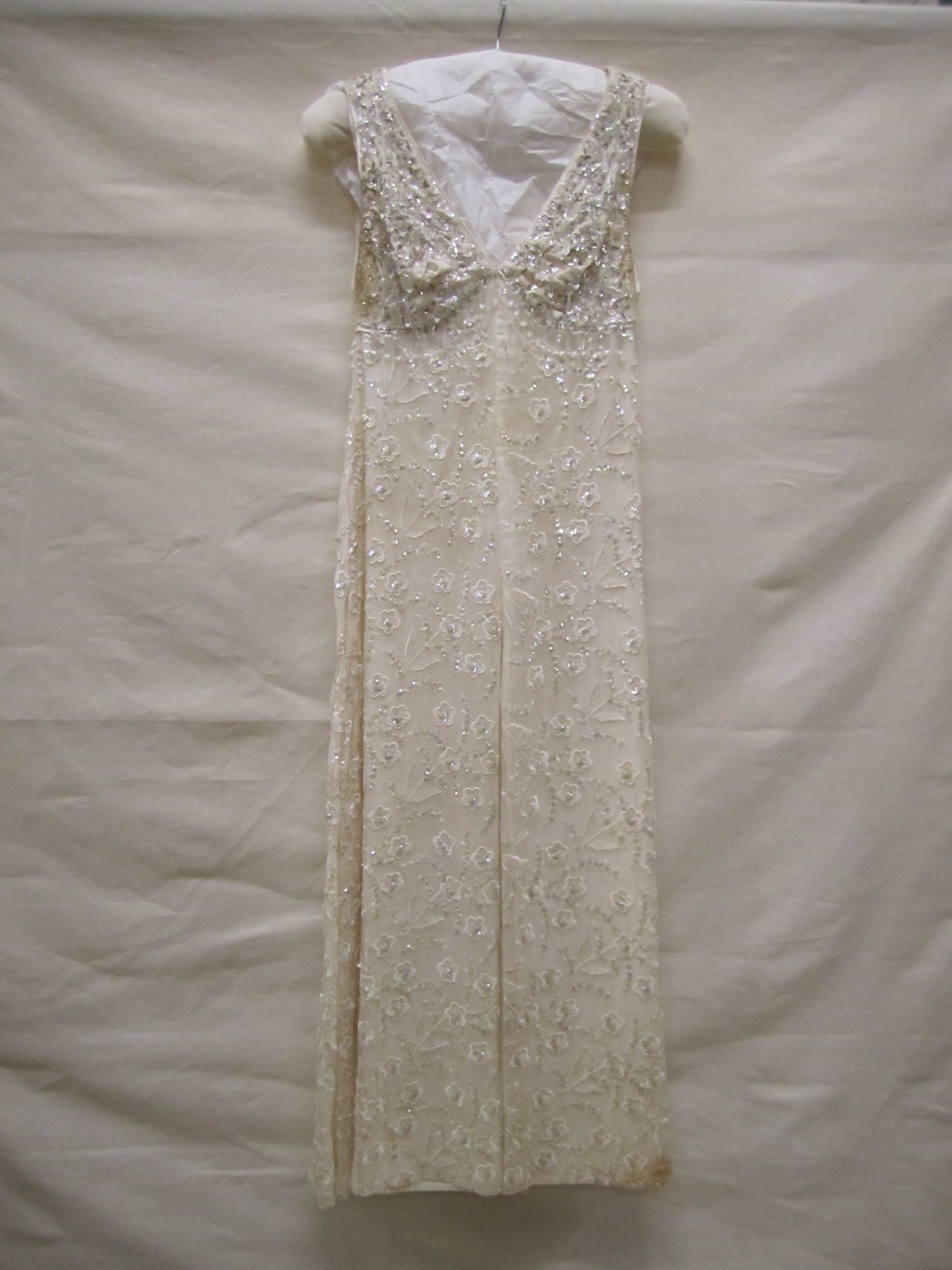 Avondjurk van dunne crèmekleurige zijde met geborduu...