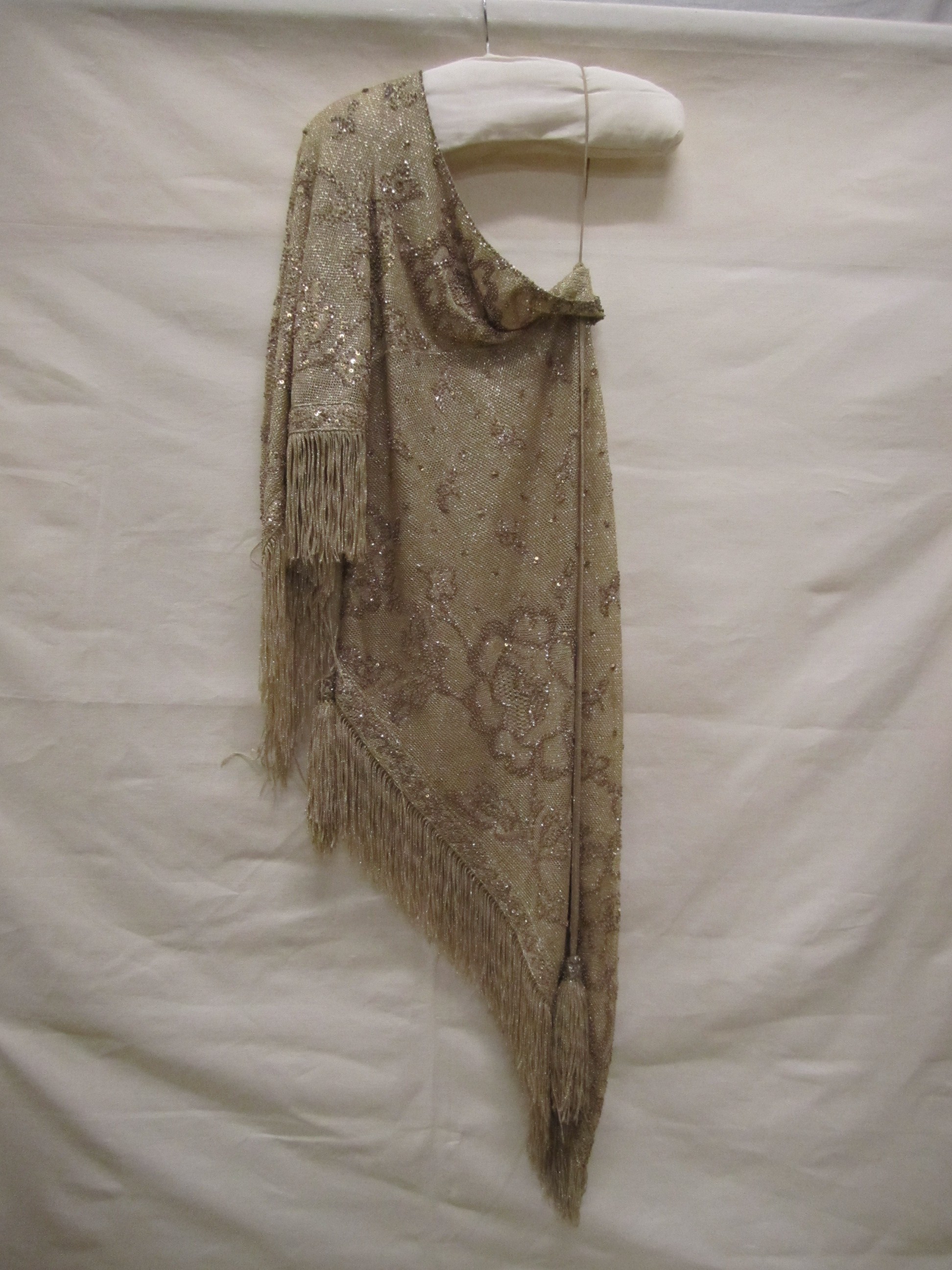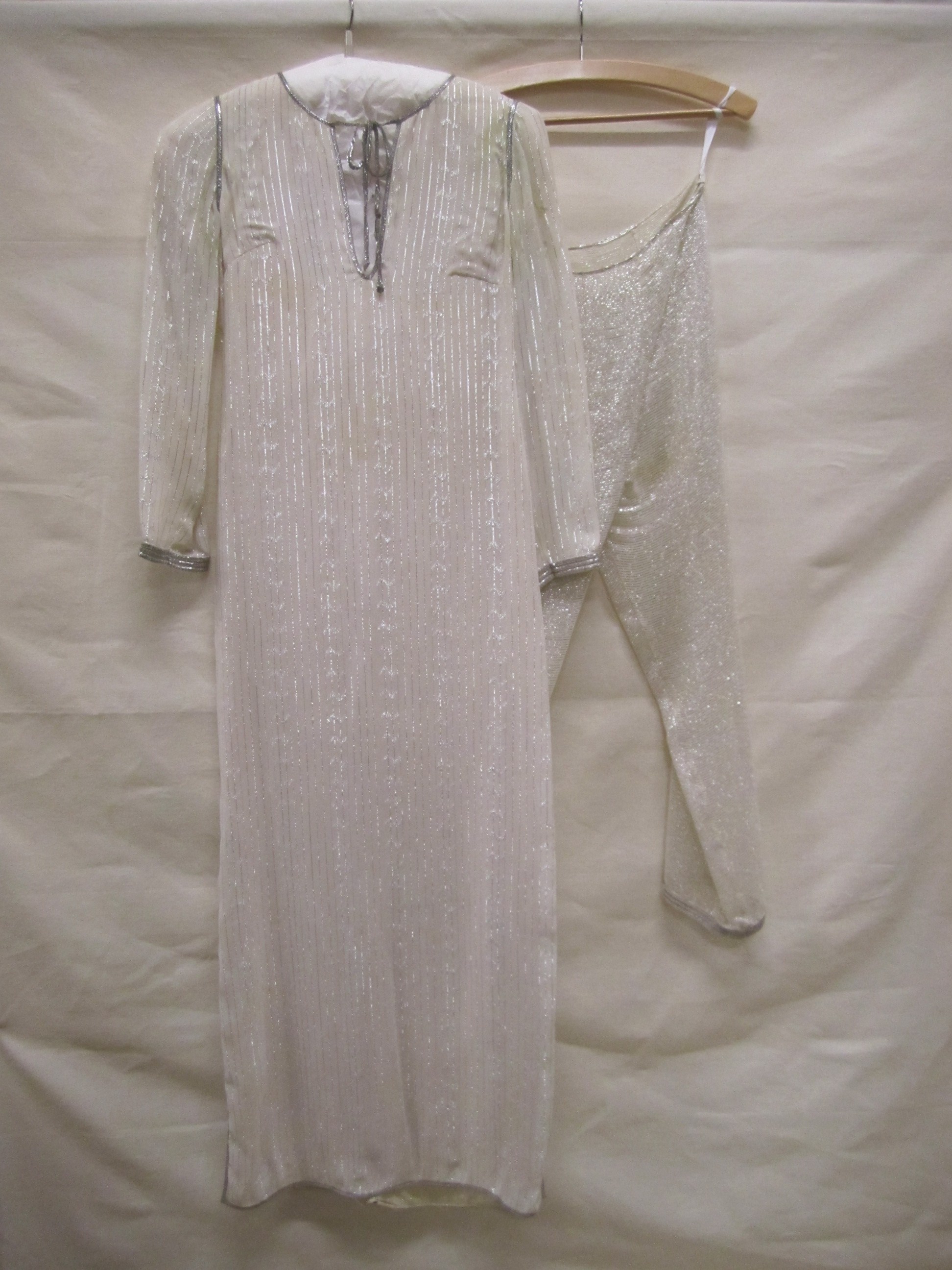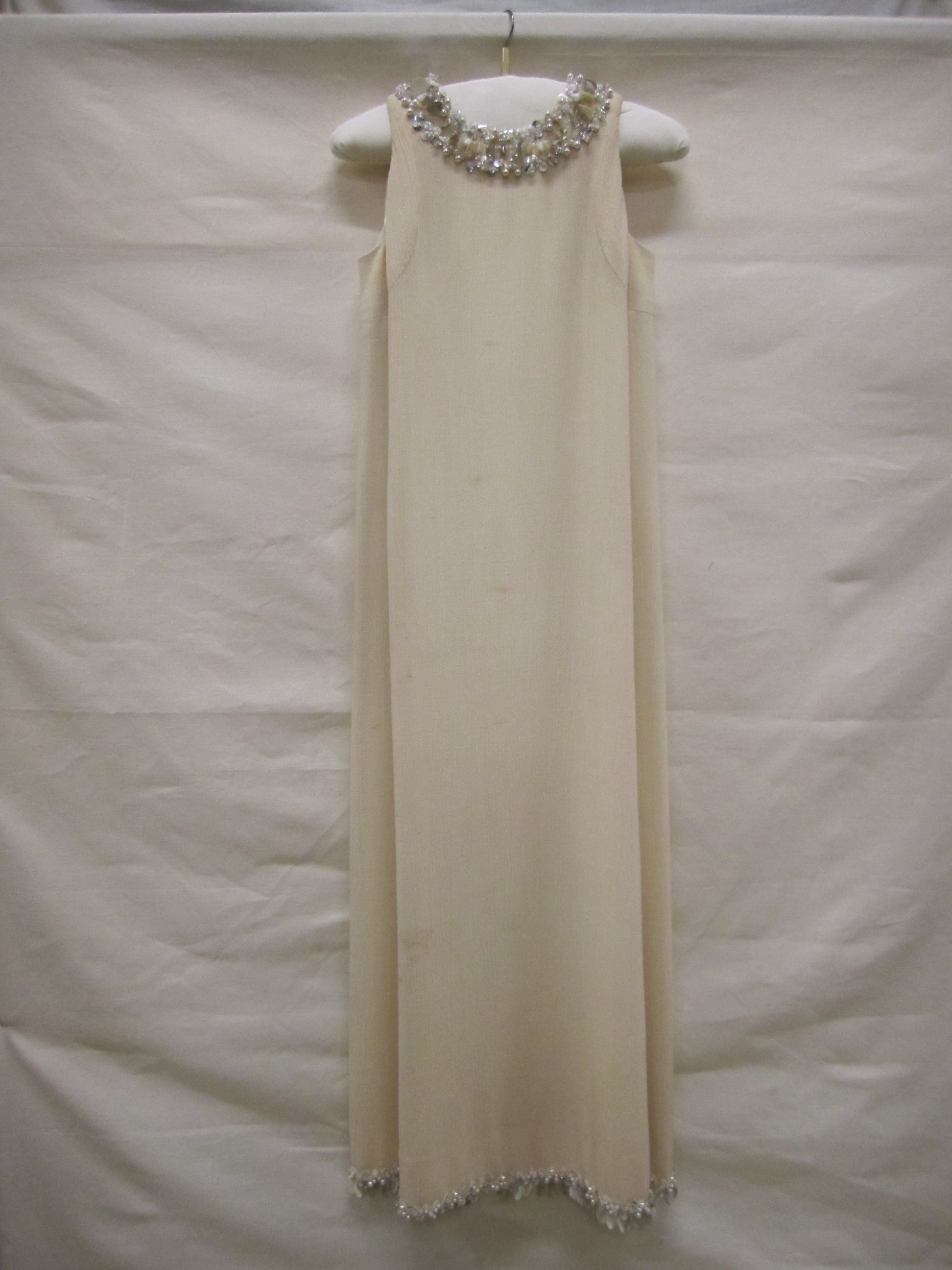 Avondjurk van crèmekleurige zijden crêpe, lang, mouw...