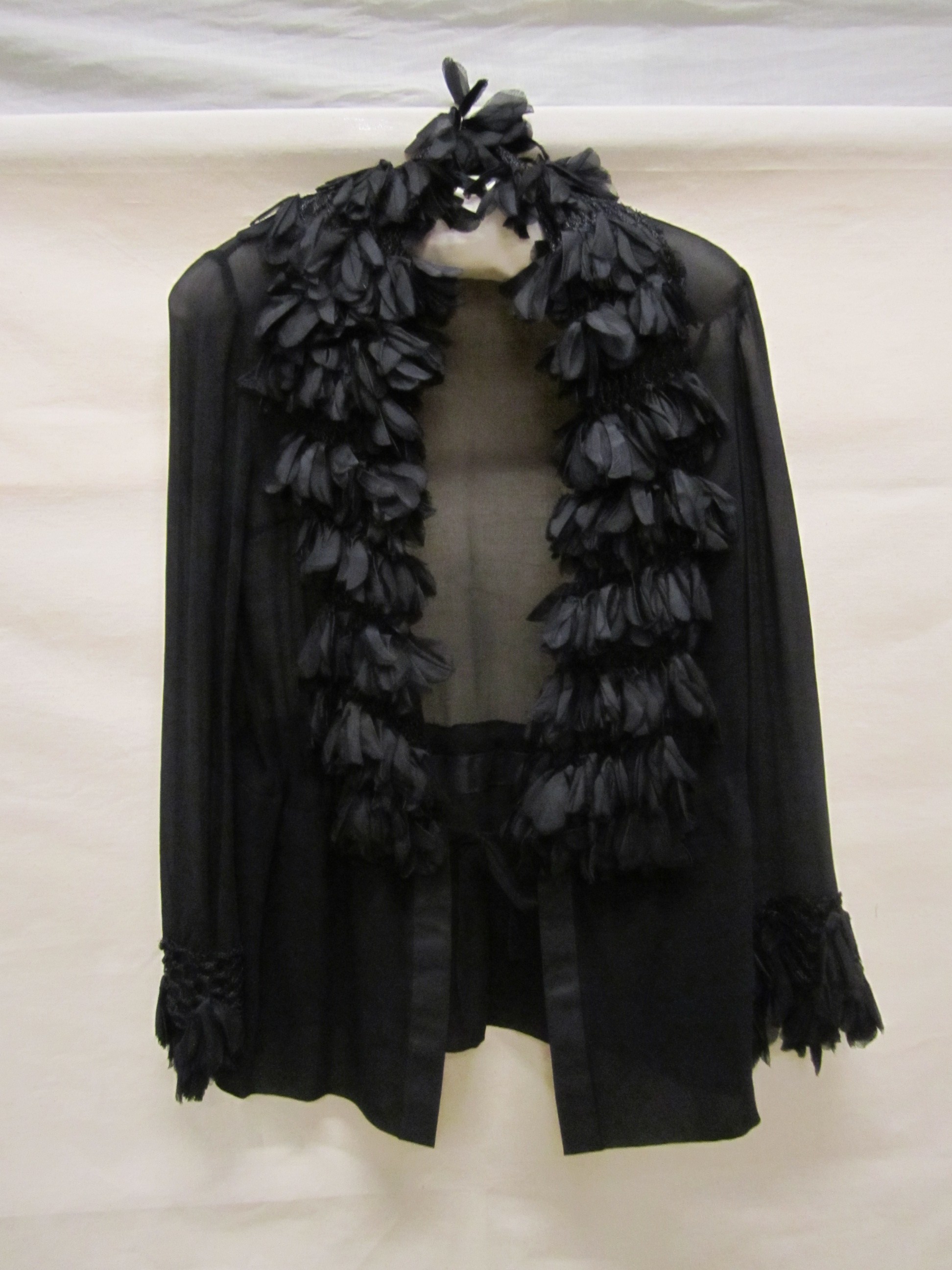 Avondjasje van transparant zwart zijden crêpe. Langs...