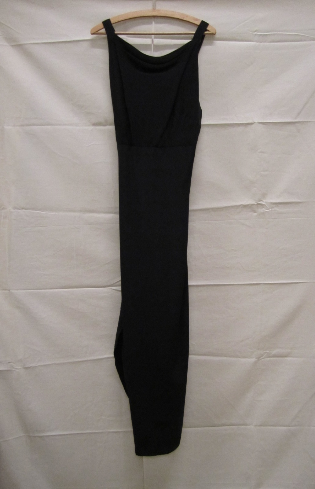 Avondjurk van zwarte crêpezijde, lang model met gepl...