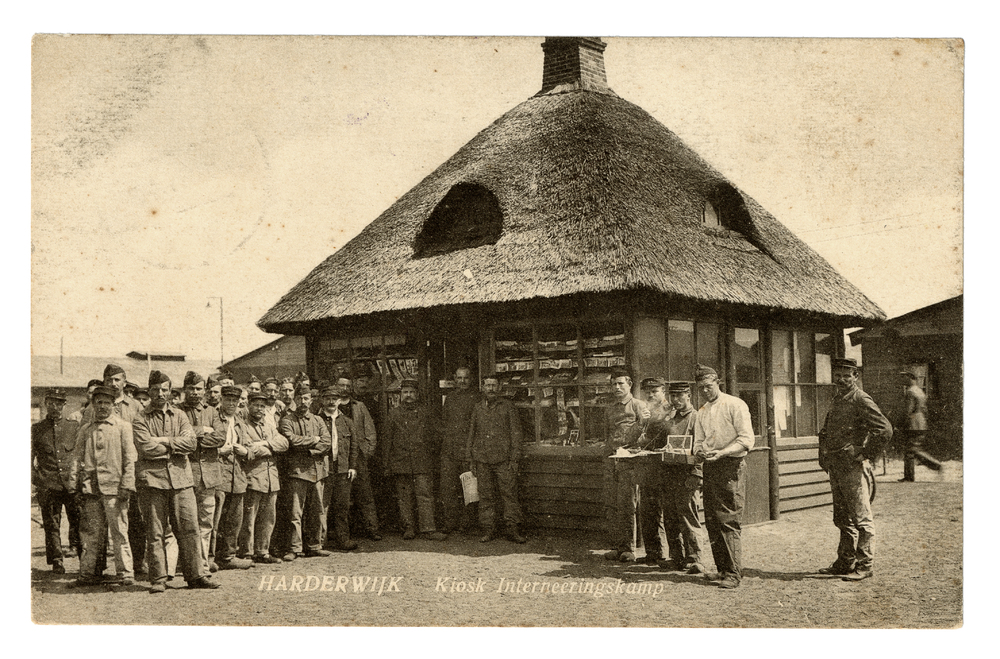 Prentbriefkaart, getiteld 'Harderwijk Kiosk Interner...