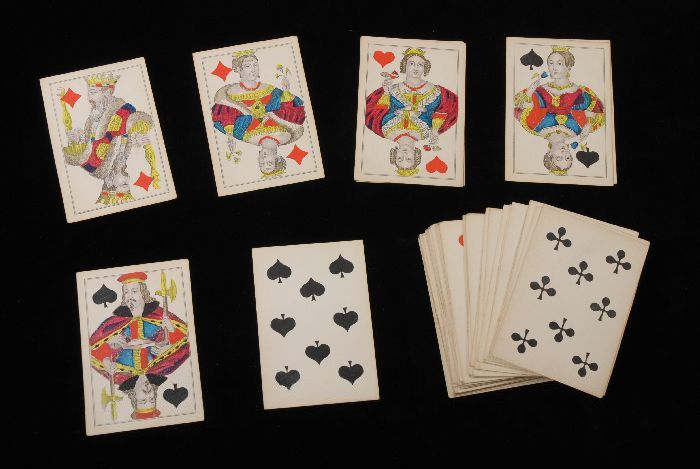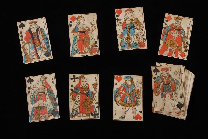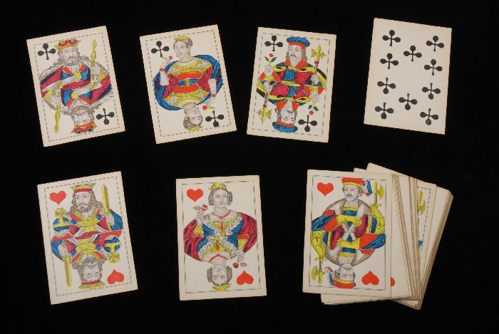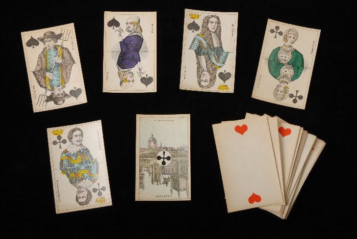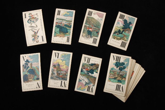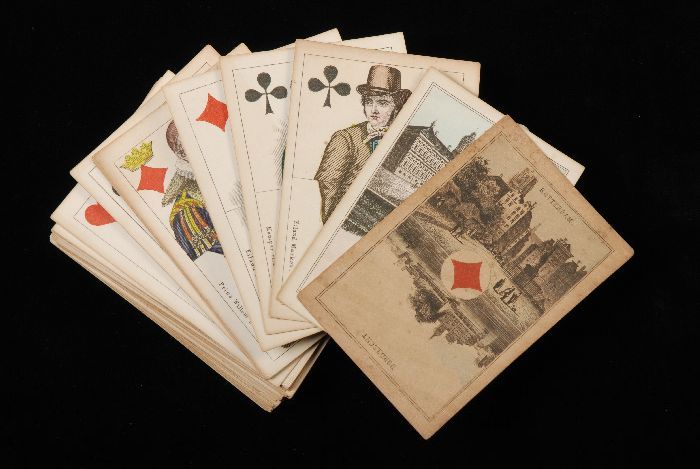 Spel kaarten met stadsgezichten, klederdrachten en s...