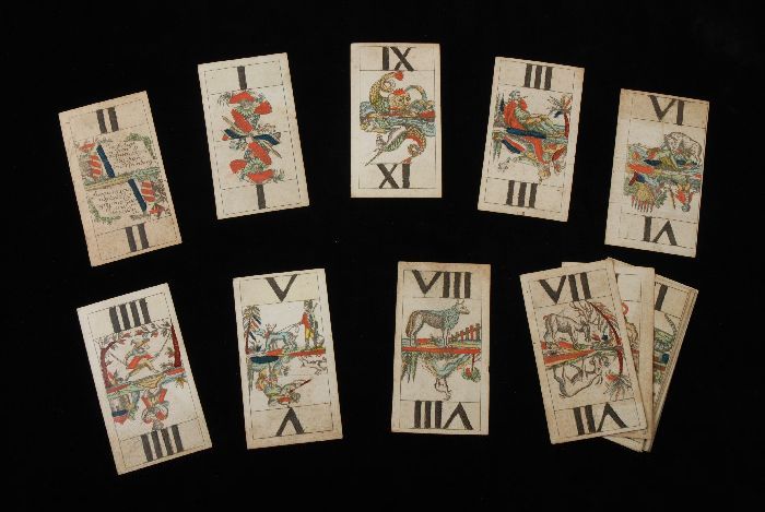 Tarok-kaartspel met zwarte zonnen op achterkant