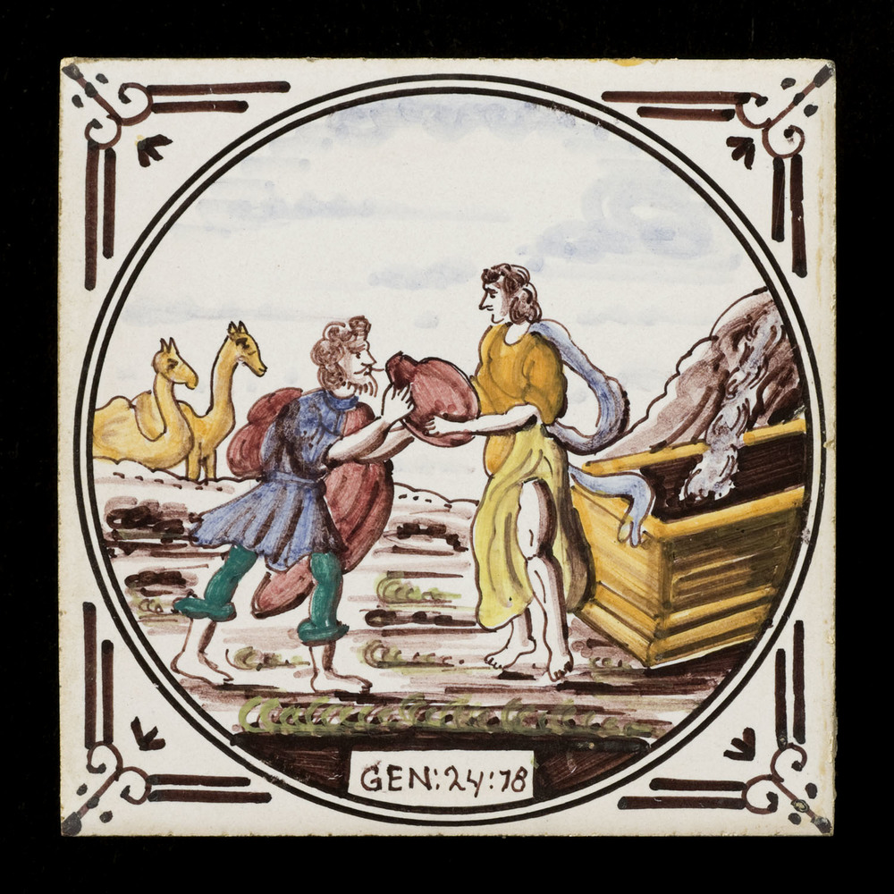 Tegel van keramiek met tinglazuur, voorstellende: Re...